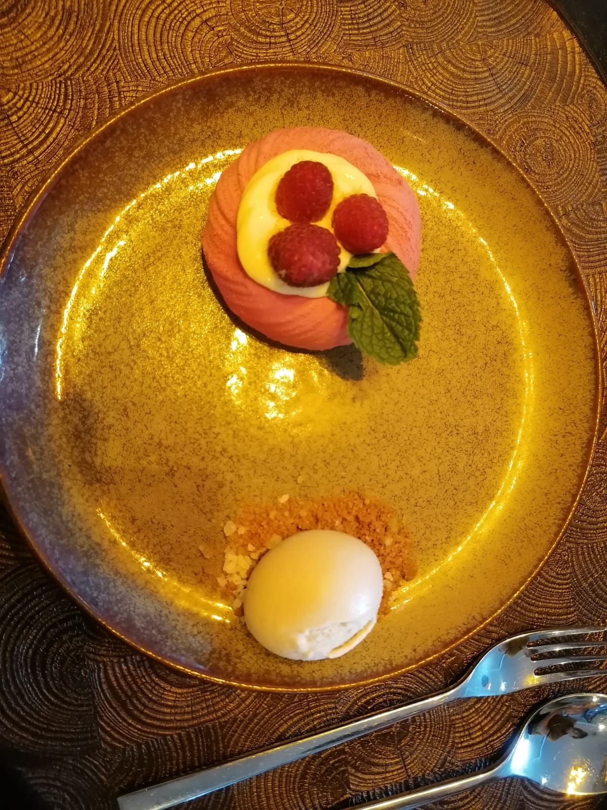 Cuisine raffinée dommage des plats froids concernant les St Jacques en entrée et les plats de résistance moins que tiède pour le sandre la lotte et le veau quand aux desserts un désastre lors du versement de la crème chaude sur la sphère chocolat tout s'est écroulé en 2 secondes. Nous sommes déçus.