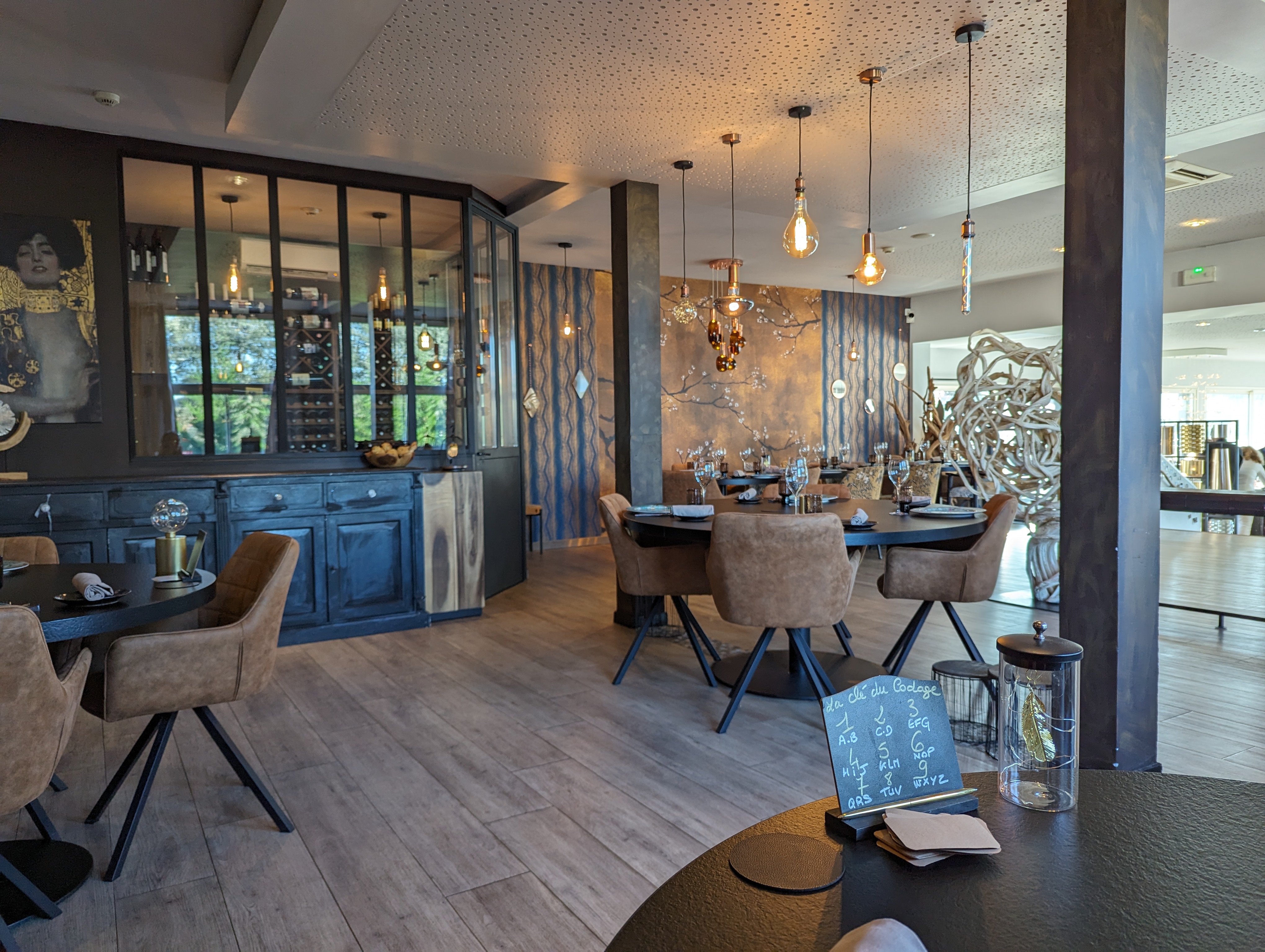 Un cadre raffiné à la décoration soignée, surtout les luminaires qui ont été sélectionnés avec goût. Un accueil et un service impeccables : compétent et efficace sans être obséquieux. Passons maintenant au coeur du sujet : la cuisine. Déjà le concept est original. Vous prenez l'apéritif et le café dans un petit salon adjacent à la salle. Certes c'est différent et cela donne une certaine dynamique au repas mais cela pousse aussi clairement à la consommation notamment au moment des mignardises où normalement on vous demande juste si vous souhaitez un café alors qu'ici on vous apporte une carte de boissons très fournie vous incitant à commander un digestif. Bref passons, la cuisine est savoureuse et bien exécutée. Les produits sont de qualité et les mariages de goût et bien réussis. Pas de surprise gustative exceptionnelle néanmoins. Deux petits bémols : les mignardises sont de moindre qualité par rapport à l'ensemble (cookie lambda, chocolat de la sucette qui s'effrite peut être à cause des nombreuses variations de température auquel il est soumis...) . Ensuite la machine à Expresso était en panne, certes cela peut arriver. Ce qui me dérange c'est qu'on me facture 2,80€ un café en capsule au même prix qu'un grand cru d'arabica. Parmi les capsules de remplacement il n'y avait aucun choix et même pas de décaféiné. Un petit bémol donc qui ternit l'ensemble ce qui est fort dommage mais facilement rectifiable.