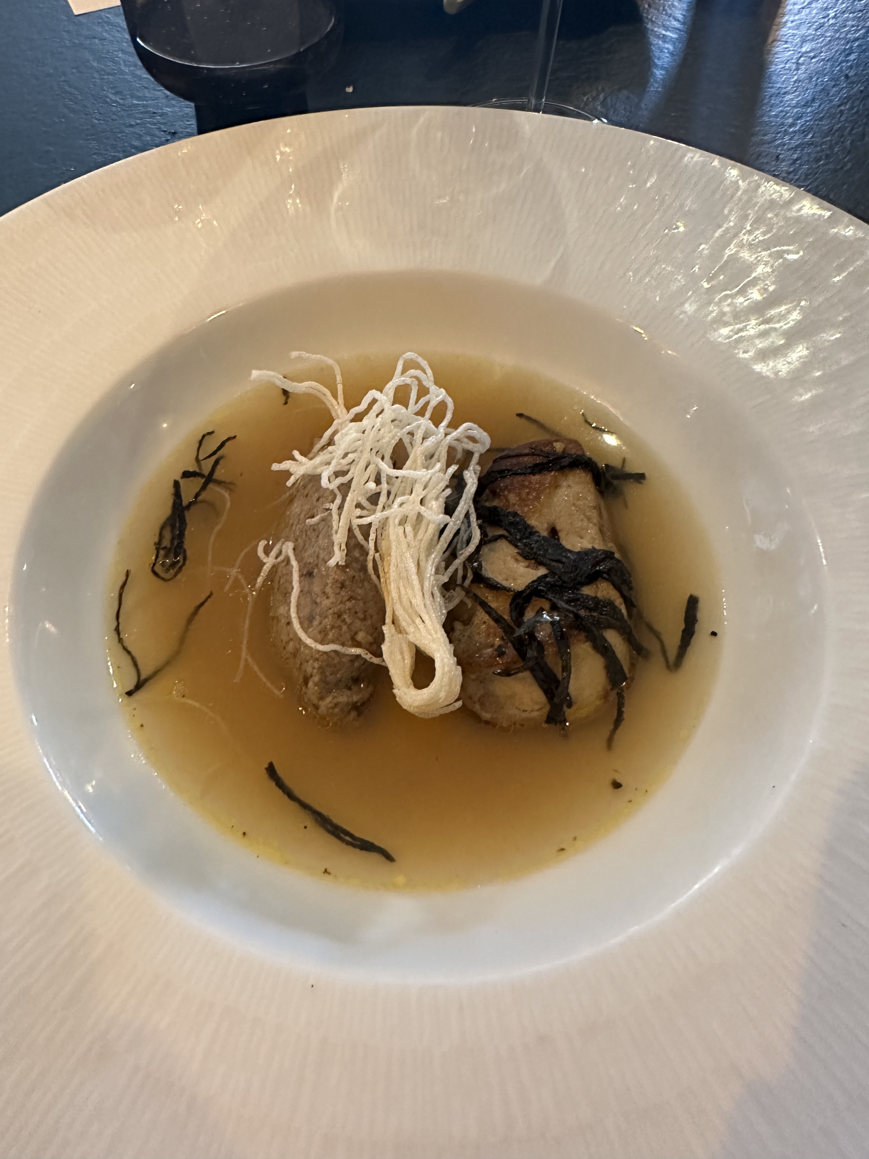 Avis sur le restaurant : Magnifique cadre, très belle accueil cuisine raffinée, mignardises et mise en bouches originales. Sauce soja délicieux, l'entrée de ravioles à la crevette très savoureuse.
