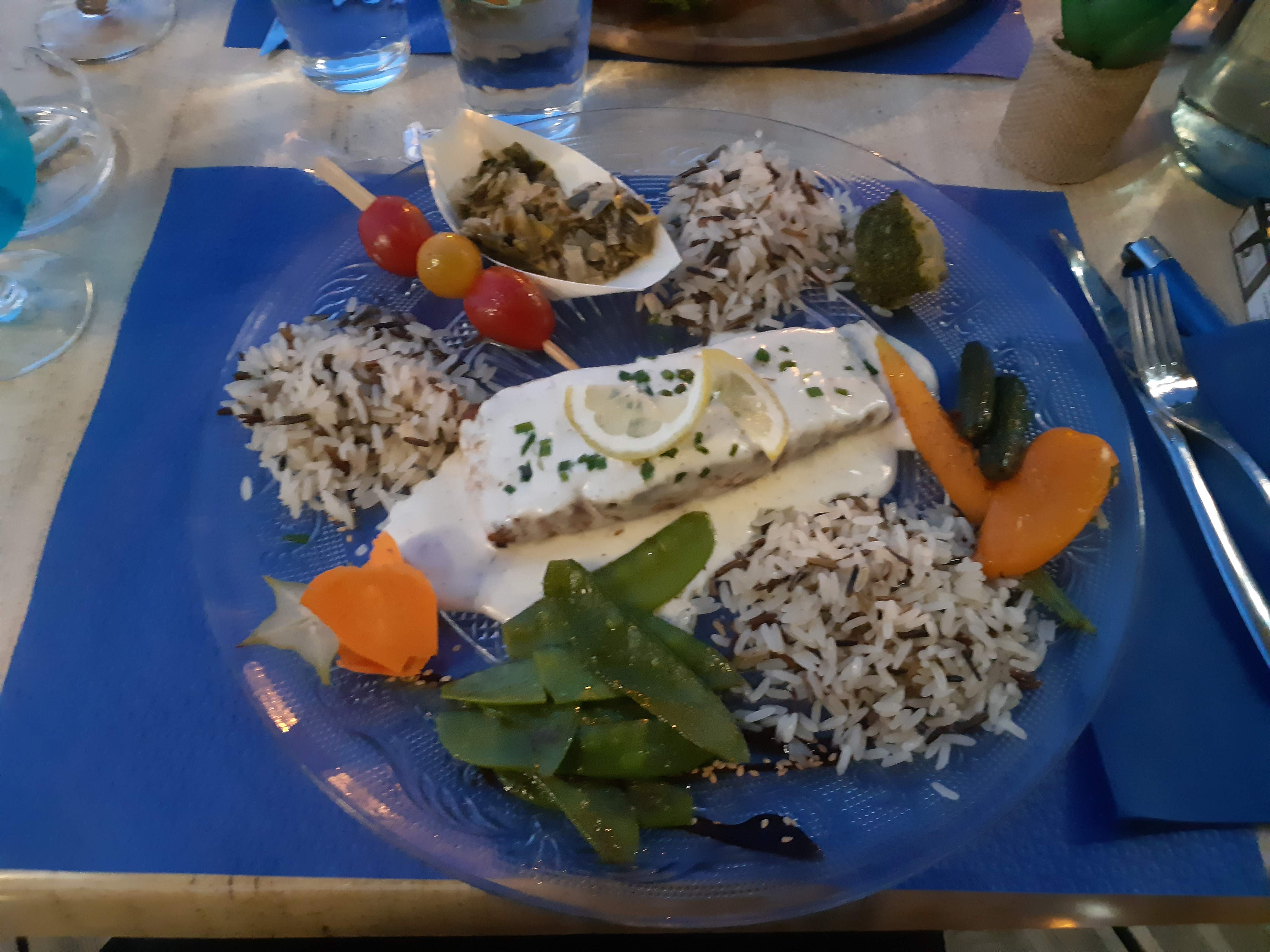 Bon restaurant de vacances, jolie vue en terrasse, belle salle à l'intérieur, plats corrects nécessitant un peu plus d'imagination, service rapide et souriant