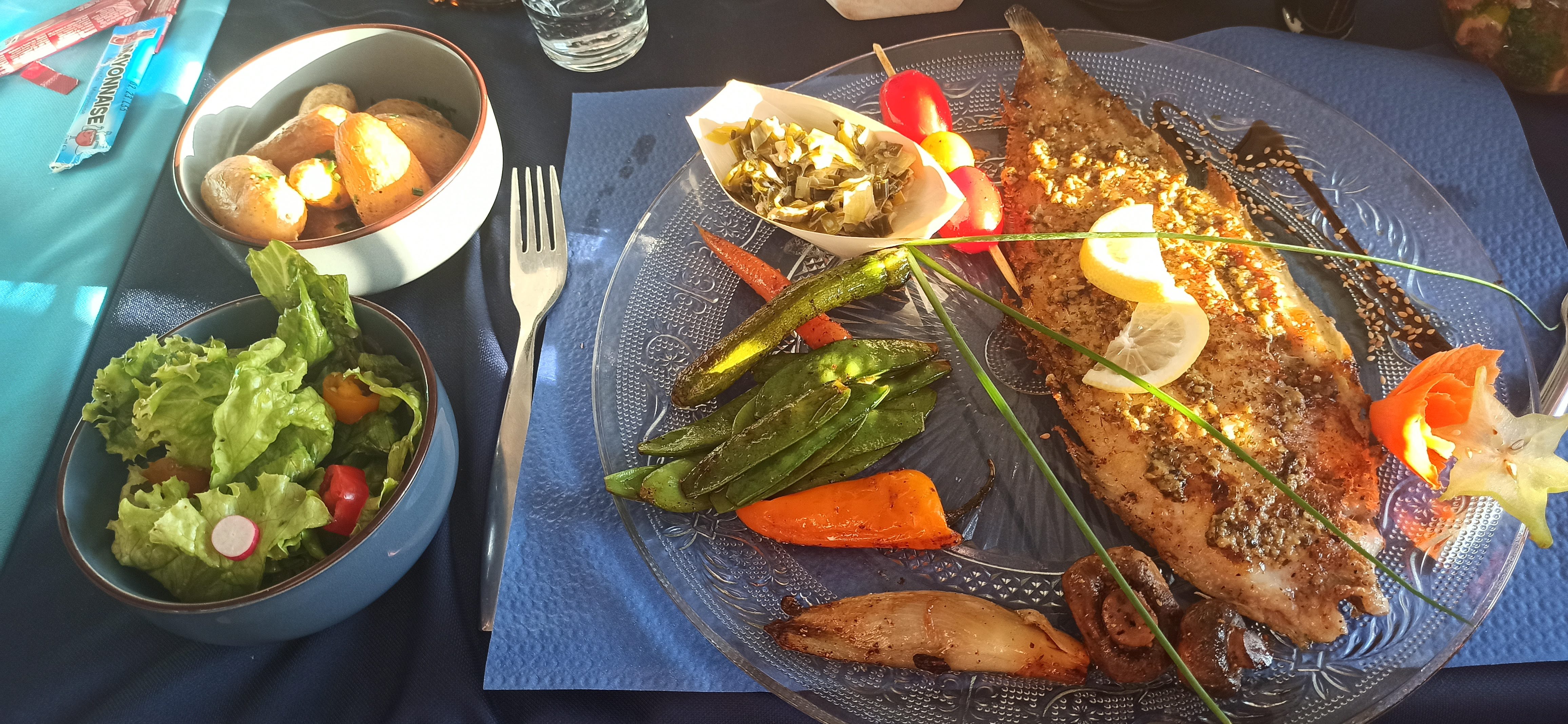 Une soirée mémorable. Un accueil convivial et chaleureux, sensible à toutes nos demandes. Des coquilles Saint-Jacques à se relever la nuit, des gambas flambées excellentes, des moules appétissantes. Apparemment la nouvelle équipe relève le niveau. Et un super coucher de soleil sur l'estuaire. Merci pour ce bon moment !