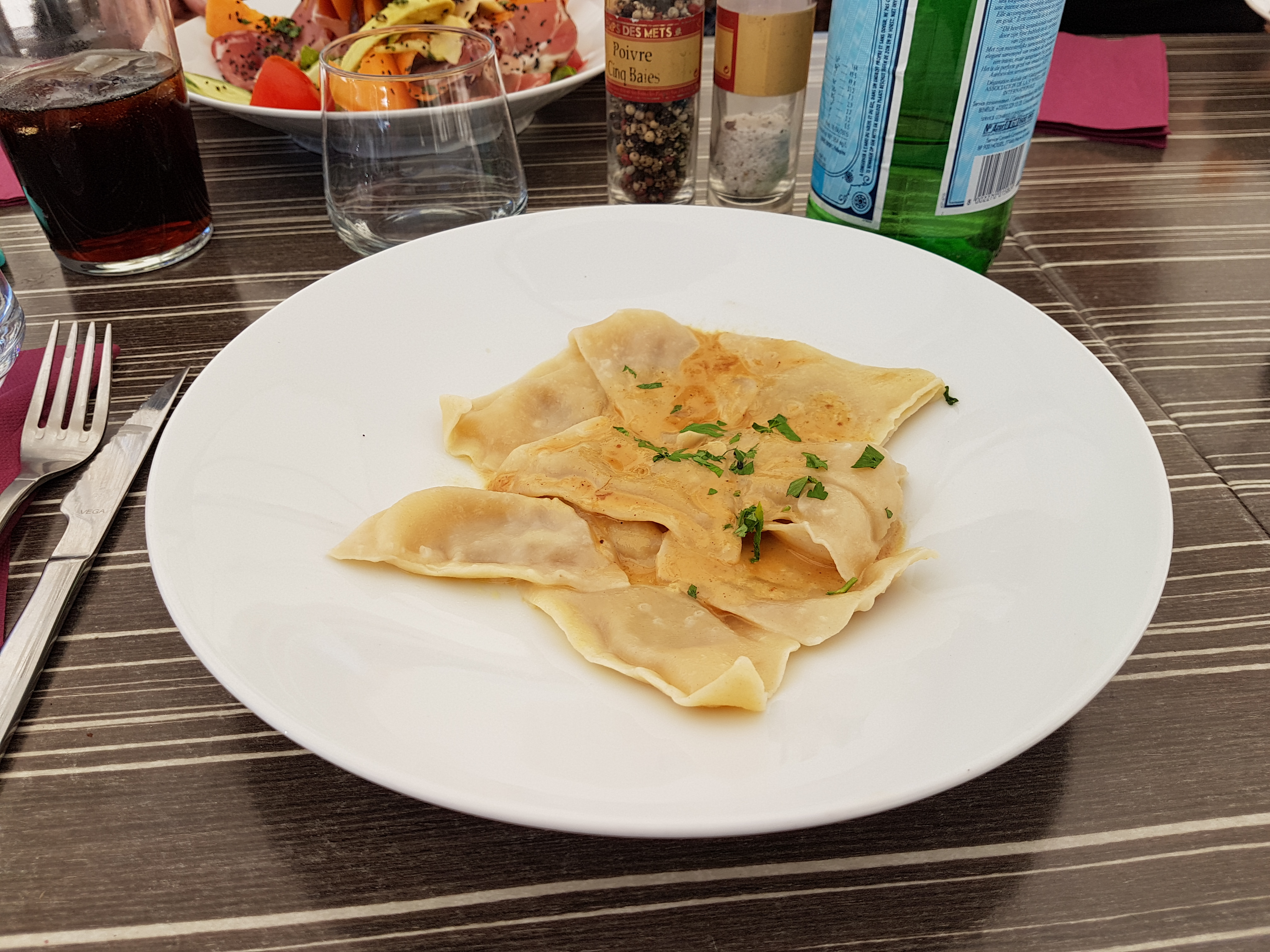 Délicieux raviolis au foie gras, service sympathique, prix raisonnable et cadre agréable