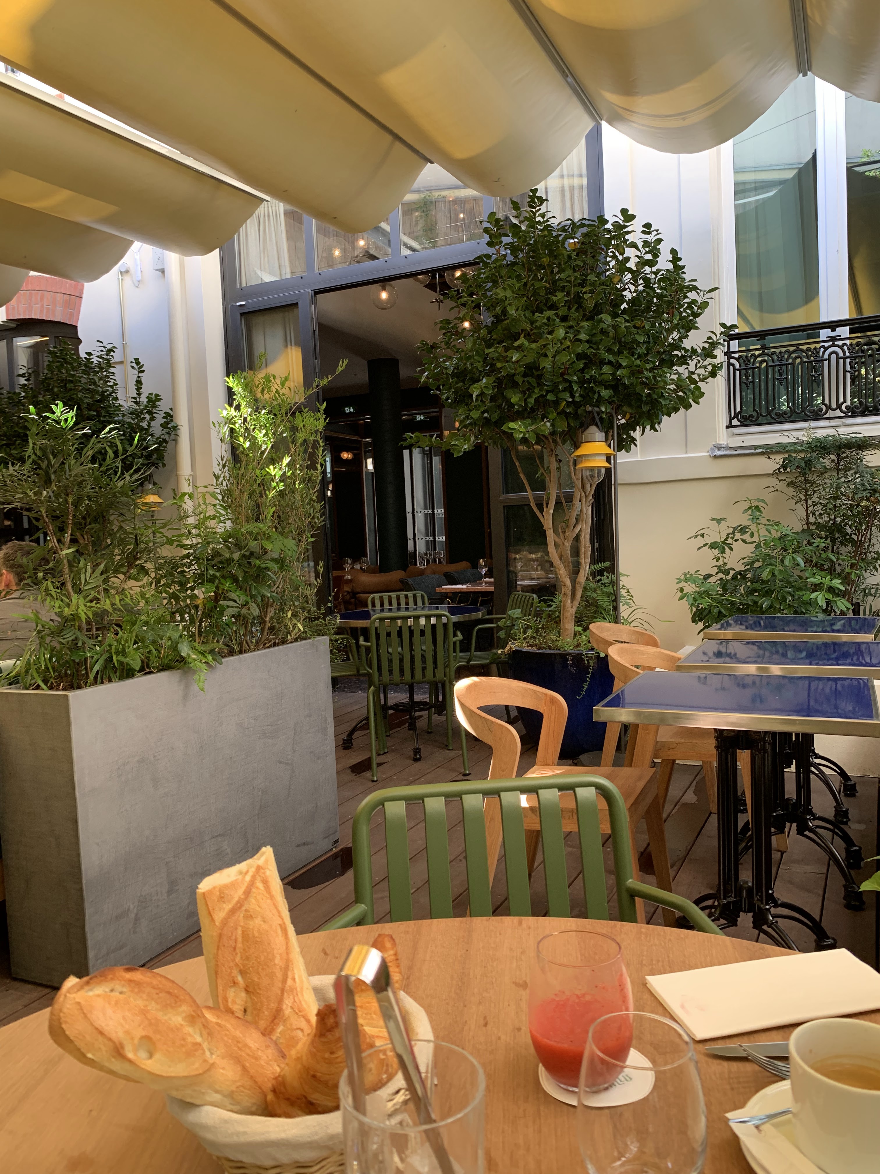 La terrasse est absolument imbattable à 100%. C’est un espace absolument charmant. Si vous souhaitez vivre une expérience de terrasse à Paris qui ne soit pas encombrée comme tant d’autres, ceci est peut-être pour vous. Cependant, je dirais que la raison pour laquelle il n’est pas rempli est que les riz ne correspondent pas aux offres. Le service est bon, même si je dirais par-dessus bord. (J'étais littéralement en train de porter du pain à ma bouche lorsque le serveur est arrivé et a emporté la corbeille à pain contenant le reste du pain.) Cependant, la nourriture est également très bonne et, au prix, elle devrait vraiment être exceptionnelle. Pour vous donner un exemple, un aperol spritz coûte 16 €. La nourriture seule, sans dessert ni boisson, s'élevait à 45 € par personne. Les portions étaient suffisantes, mais la nourriture n'était pas exceptionnelle.