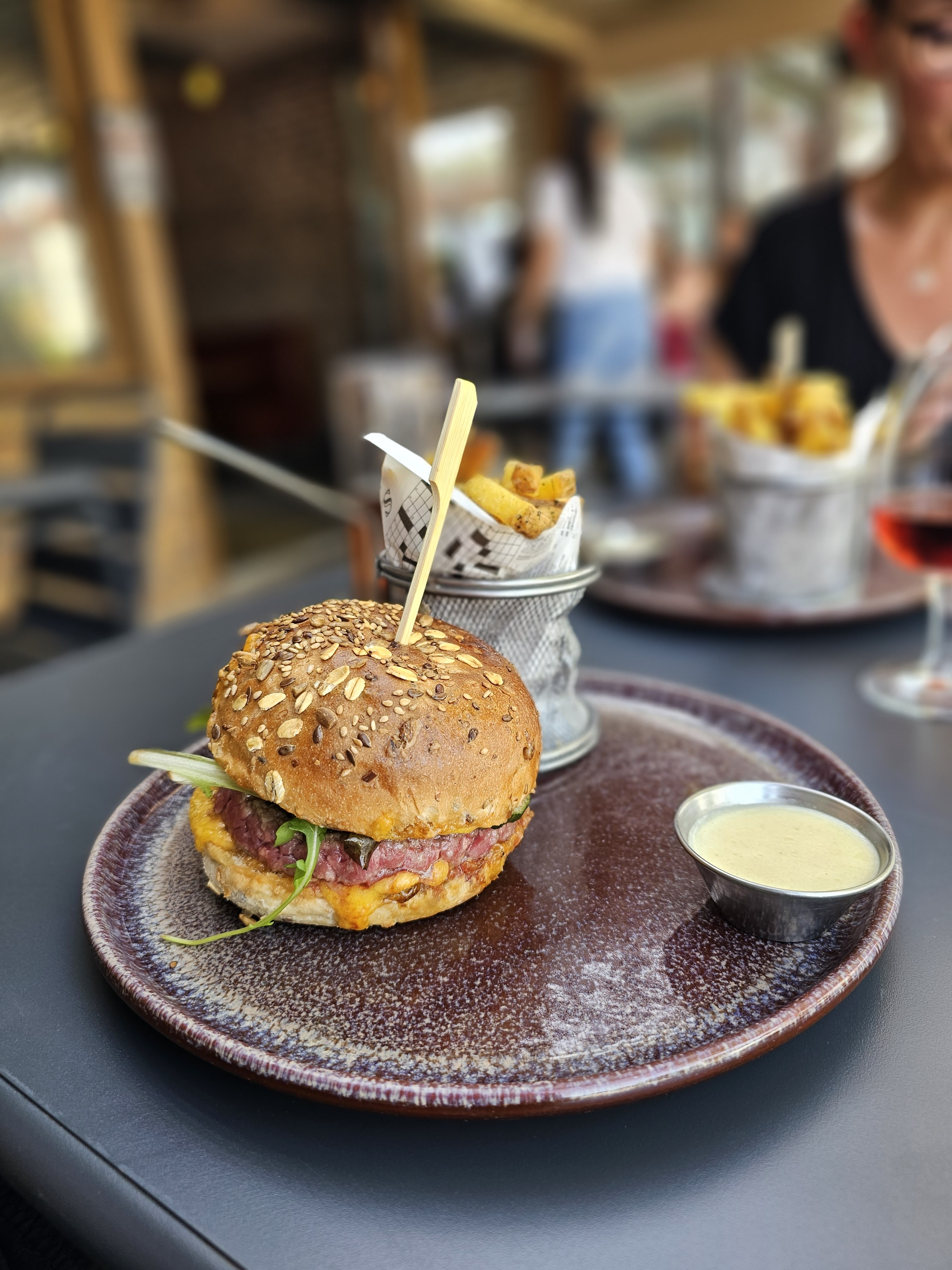 Restaurant bien tenu, propre et stylé. meilleur hamburger à 30km a la ronde. Attention à la cuisson, à point n' est pas saignant. Des petits coussins de sieges sur les chaises acier de la terasse, ne serai pas du luxe. Un bon !