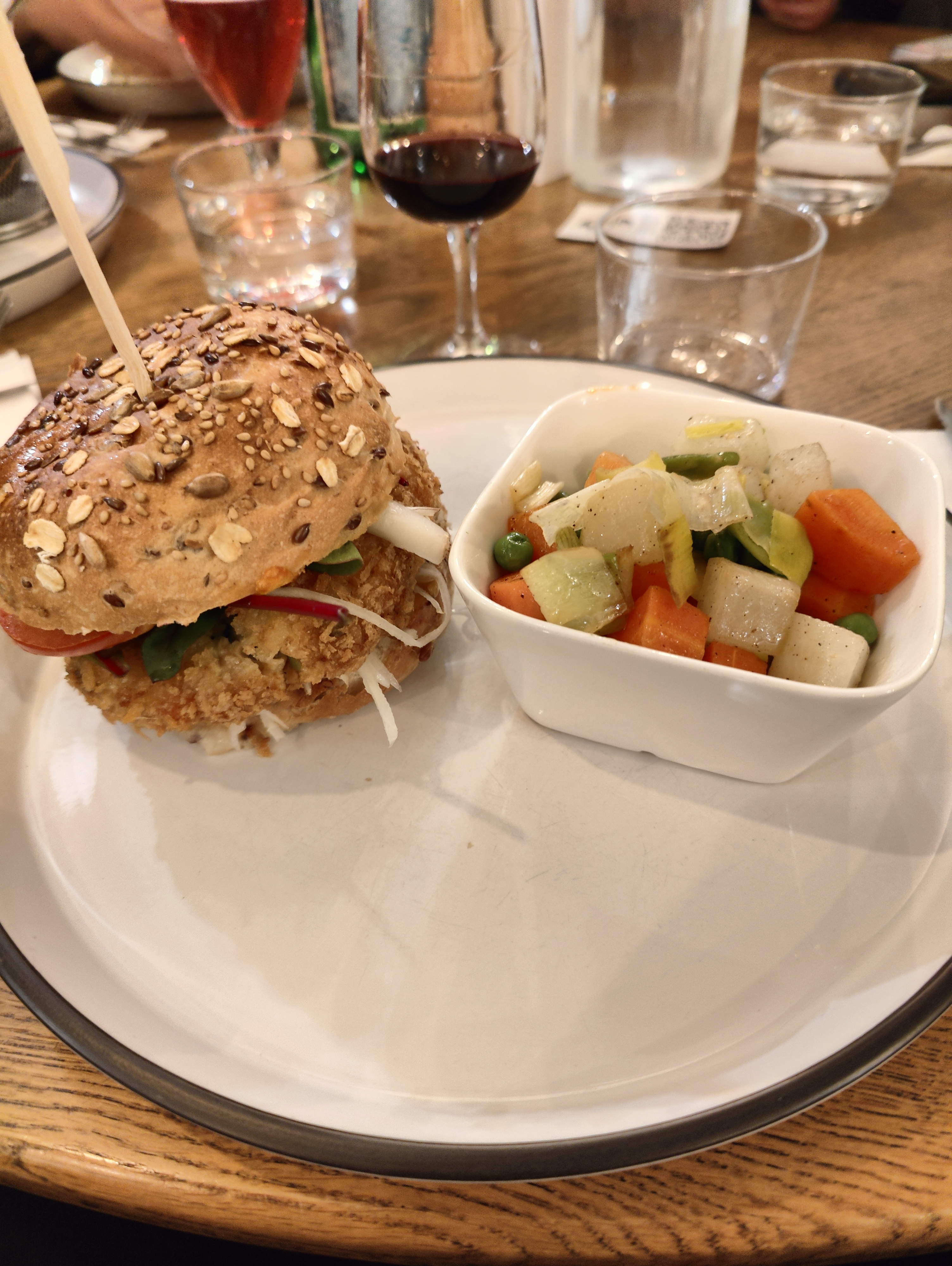 Une dinguerie ! Le burger végétarien et la salade bolw sont excellents ! C'est frais, croquant, savoureux. Et les desserts... Un délice ! Je recommande à 100%