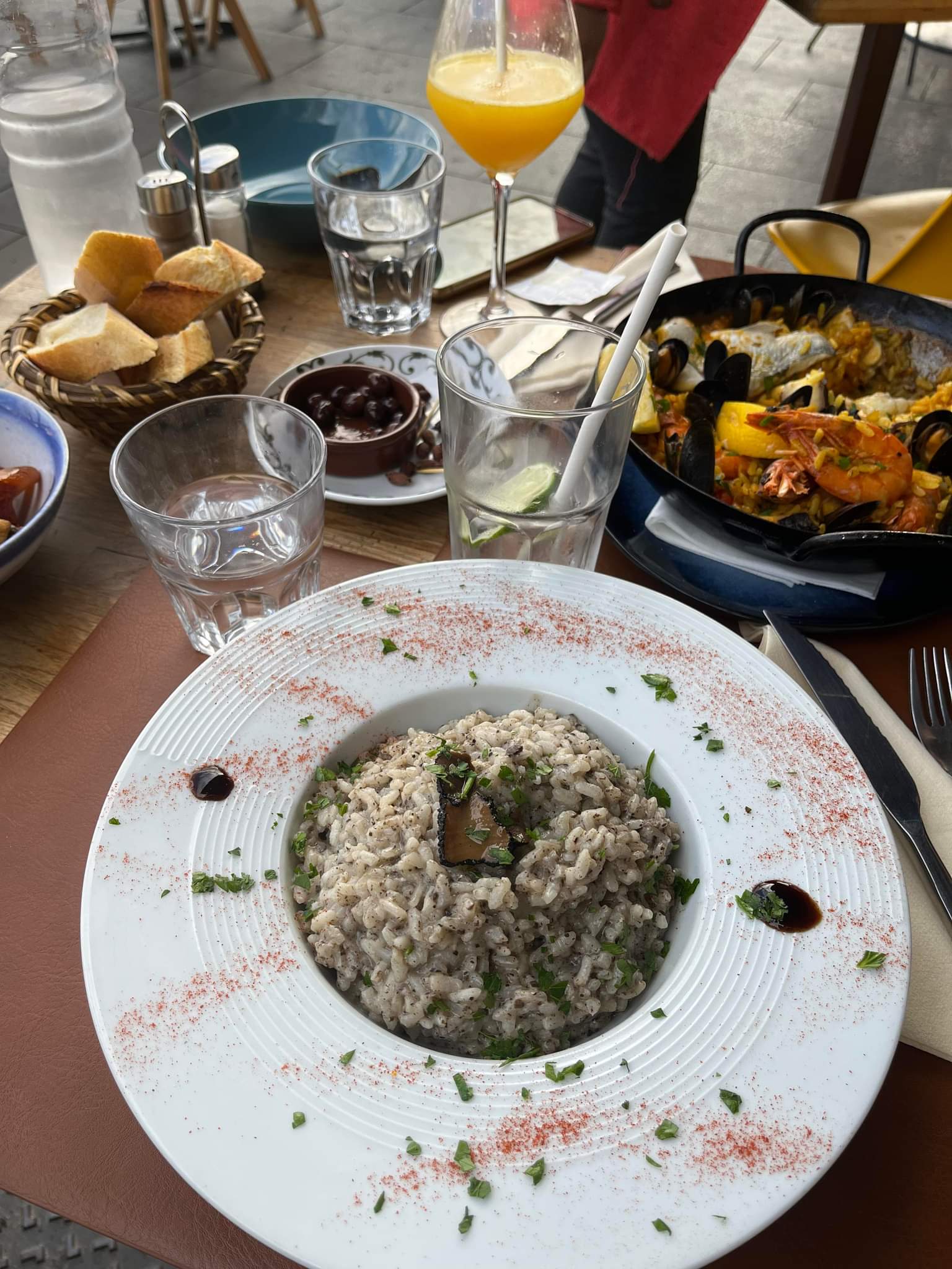 La nourriture et le service étaient excellents. Nous avions des moules en entrée (les deux versions étaient très savoureuses) et pour le plat principal nous avions un risotto aux calamars et au saumon frit. Les portions sont très généreuses. En dessert, j'ai eu une Tarte Tatin. Essayez-le certainement !!