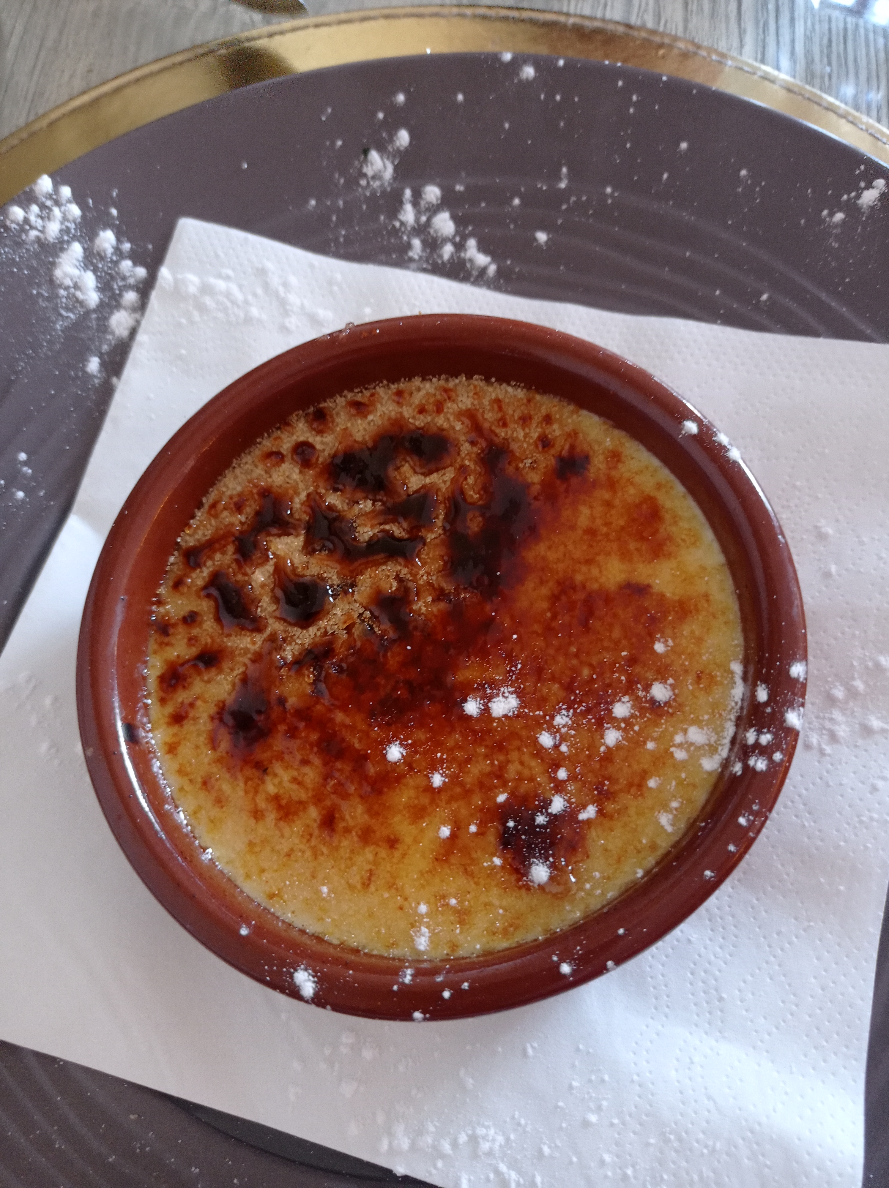 Aujourd'hui, nous avons déjeuné à cet endroit, à l'intérieur car il y avait un vent fort. J'ai choisi deux menus : mon mari soupe de poisson et calamars ; J'ai eu une entrecôte et une crème brûlée. Tous des plats vraiment bons, bien présentés avec de beaux et surtout bons accompagnements. Le personnel très gentil et serviable.