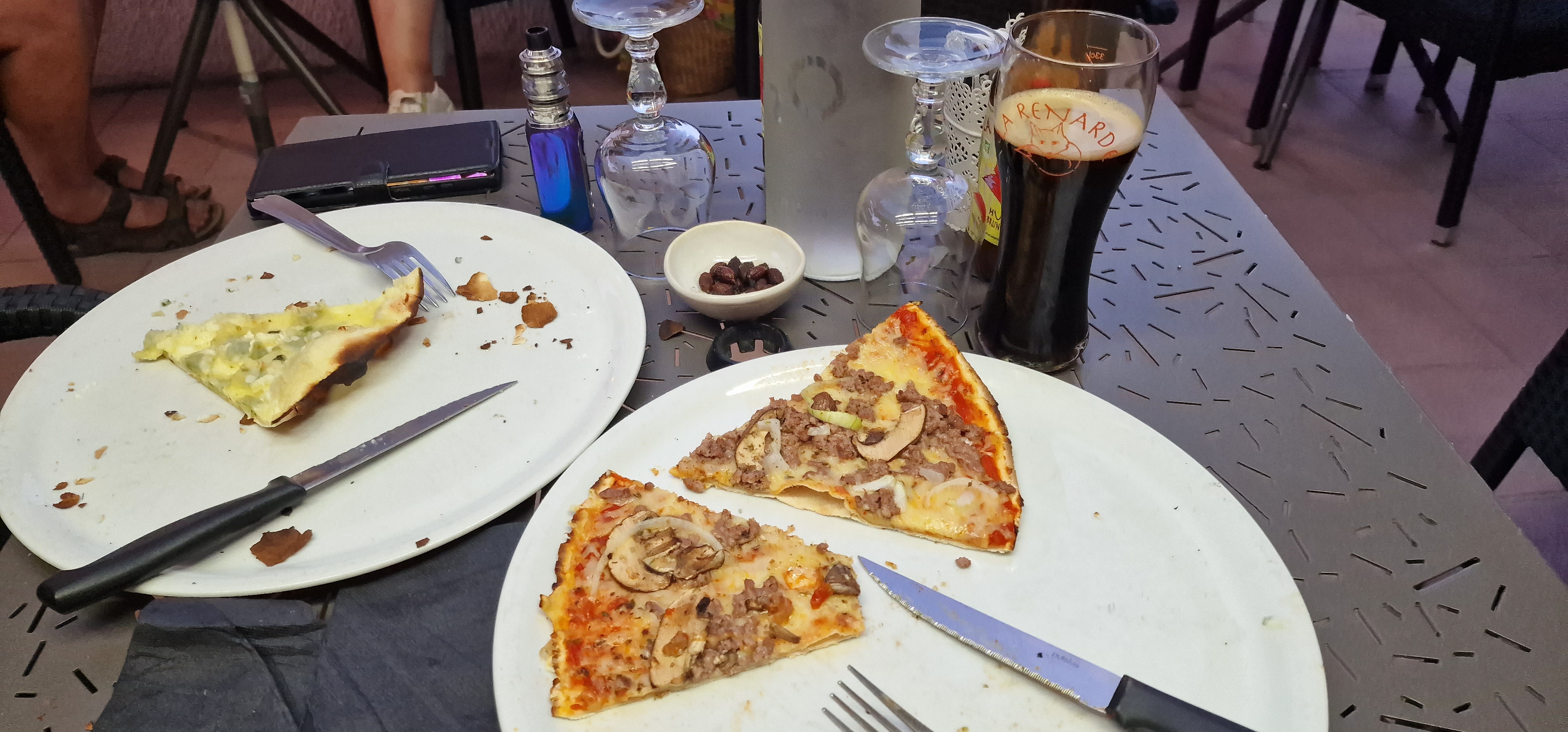 Perdu sur notre route de retour... Pause repas dans une pizzeria bien mignonne... Repas bien copieux...