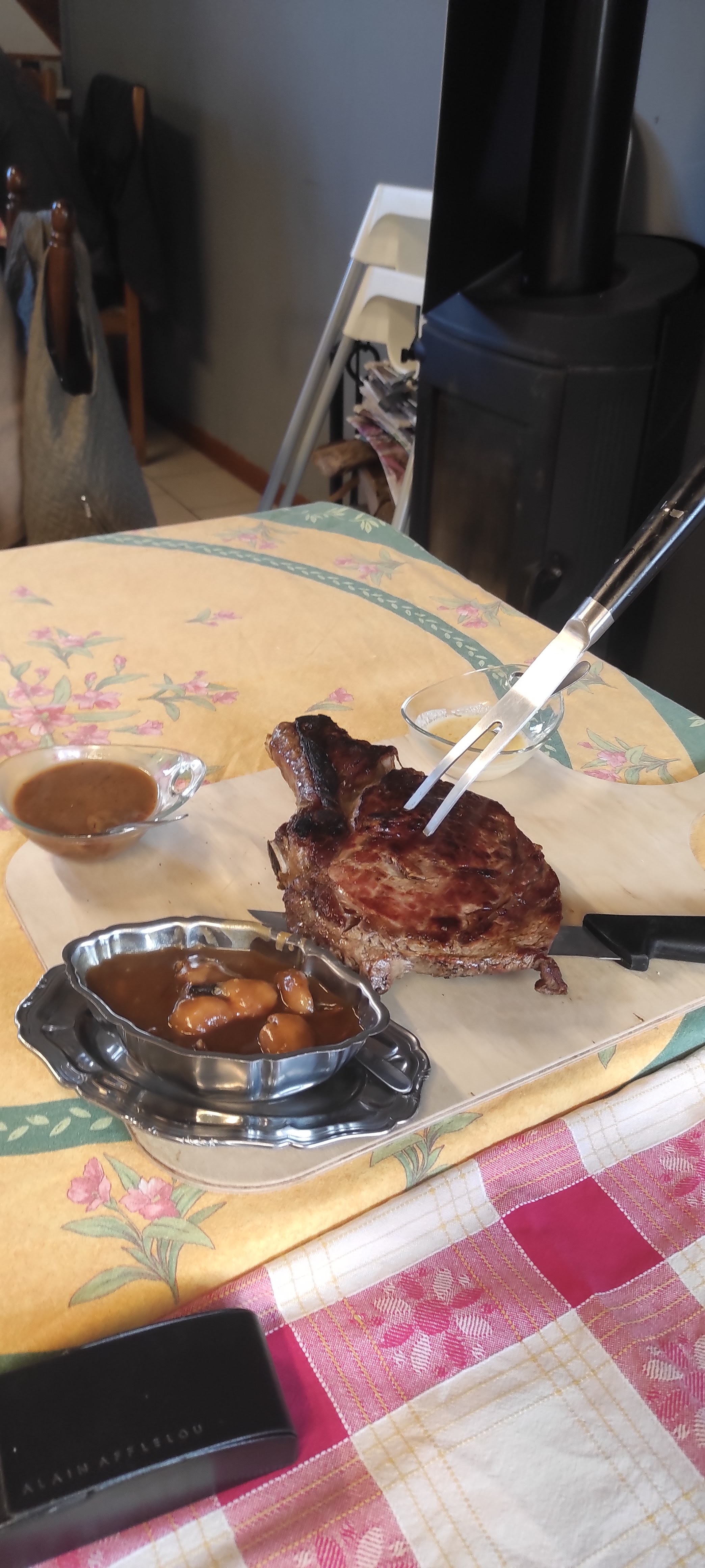 Lieu qui ne paye pas de mine mais vraiment génial. Patron au top et repas d’un rapport qualité prix imbattable!! Côté de bœuf pour 2 avec accompagnements et sauce pour moins de 40€, menu enfant à 9€… Bref ambiance conviviale repas délicieux et addition plus que très raisonnable ( et en prime le digestif pour ceux qui veulent, café offert pour ma part) bref un vrai commerçant comme on en fait plus!! Attention réserver avant par contre les places sont limitées