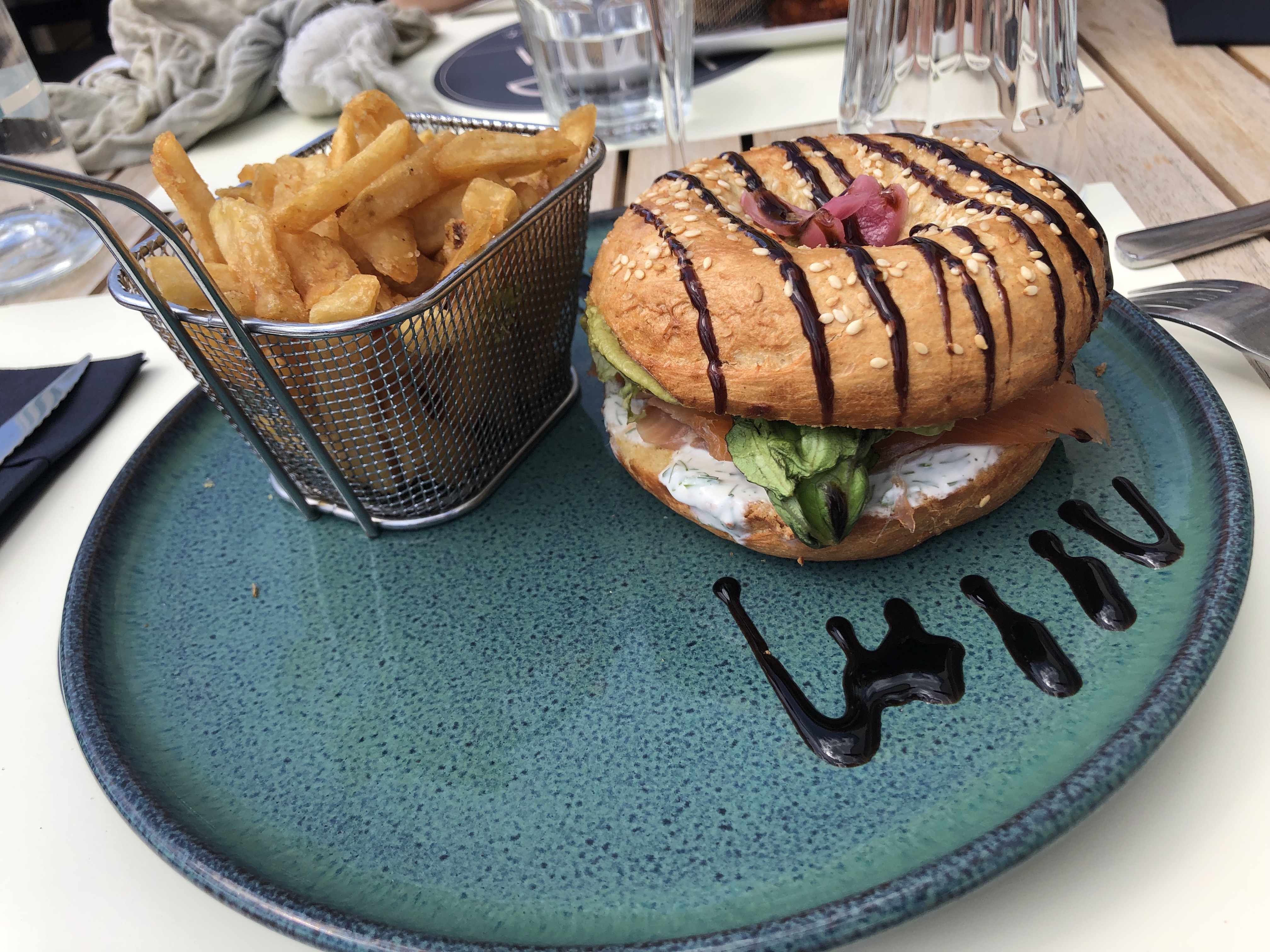 Déçu, pas d'huîtres, des frites de 2cm dures, le pain du begel sec. Service long.