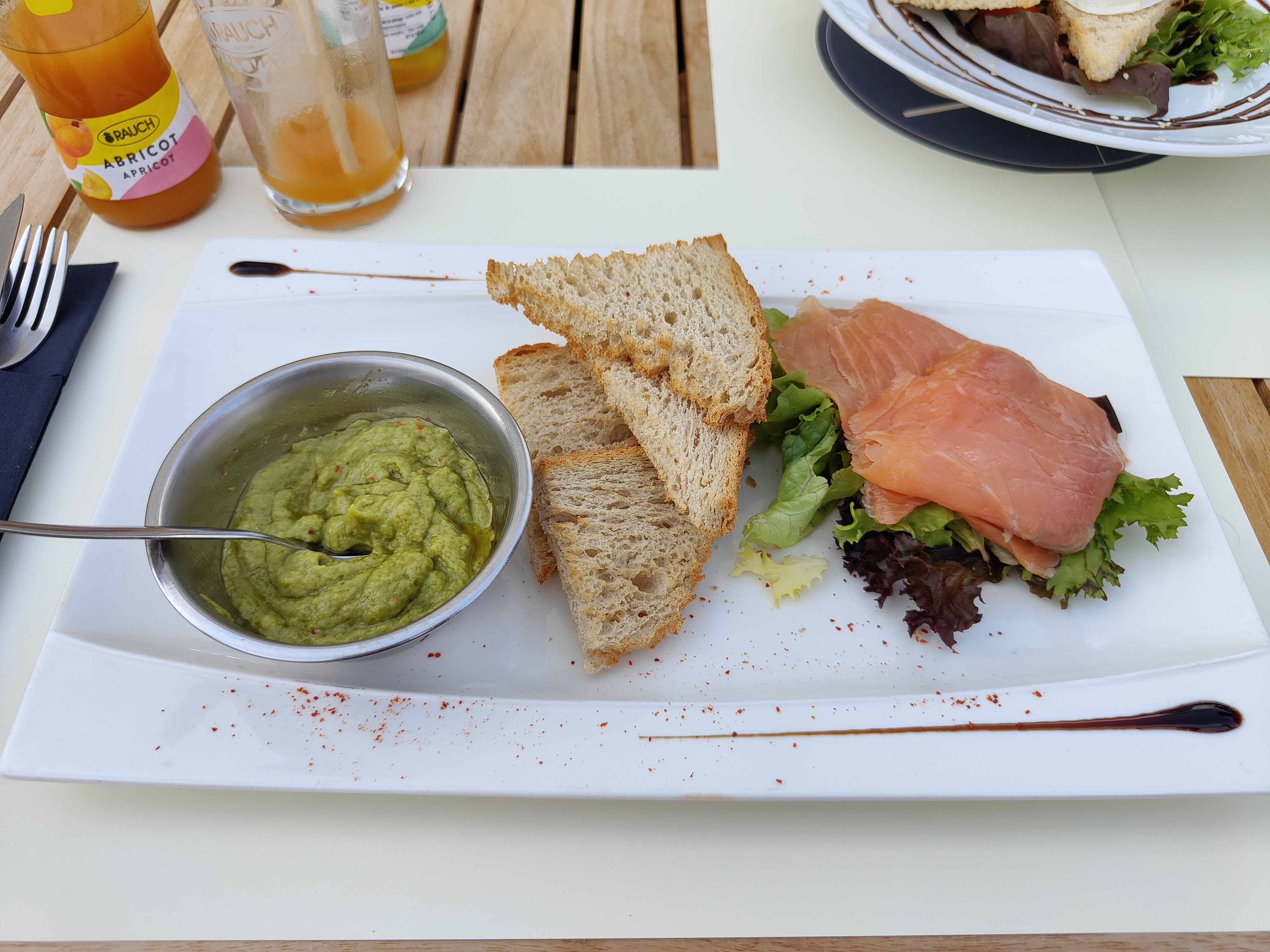 Jeunes serveur et serveuse très sympatique et souriant, planche apéro bien garnie, poisson sauce et ses légumes frais et excellents. Smoothie fraise et mangue extra !