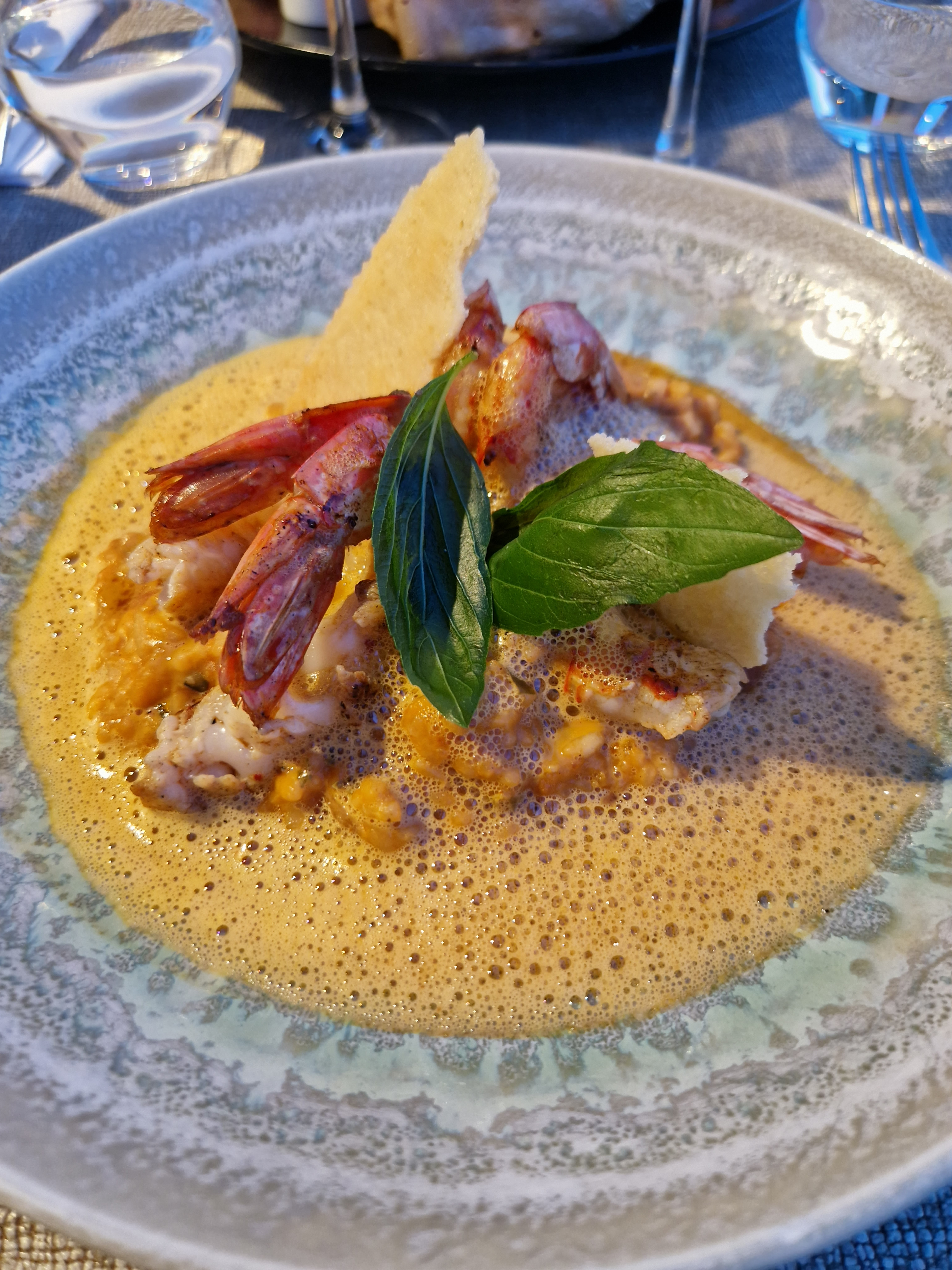 J'ai choisi cet endroit en raison de sa note plus élevée. Le personnel est gentil et sympathique, la vue sur la baie est magnifique et l'ambiance en général est très agréable. Mais ce n'était pas bon du tout. J'ai pris du risotto aux pétoncles et une seringue Aperol. Riz insipide et mal cuit, cru à l'intérieur en train de s'effondrer et aqueux à l'extérieur, bien que trop salé. Les coquilles Saint-Jacques n'étaient pas mauvaises, mais pas excitantes. Peut-être que je me suis trompé dans le choix du plat. Mais je n'ai ressenti aucun plaisir gastronomique et je ne partage pas l'enthousiasme pour ce restaurant. Et le cocktail n'était pas bon non plus.