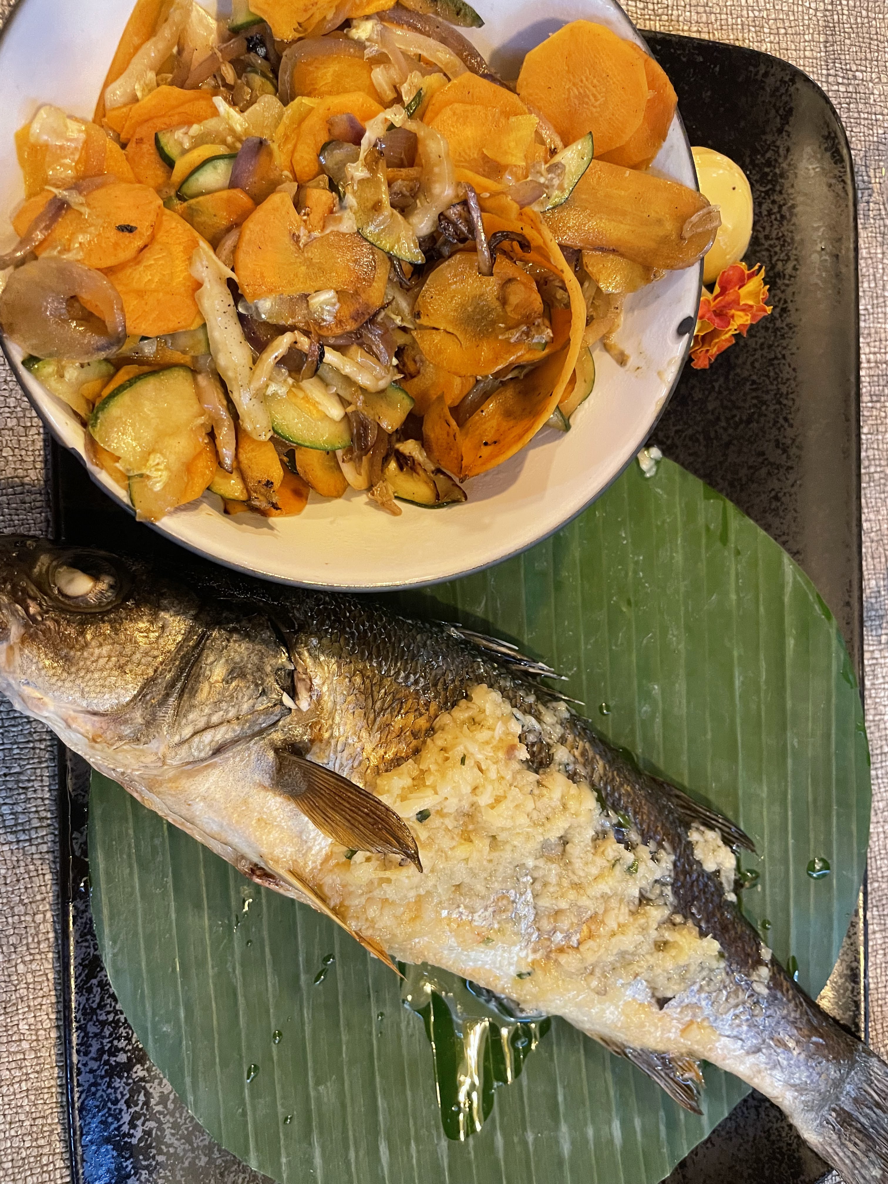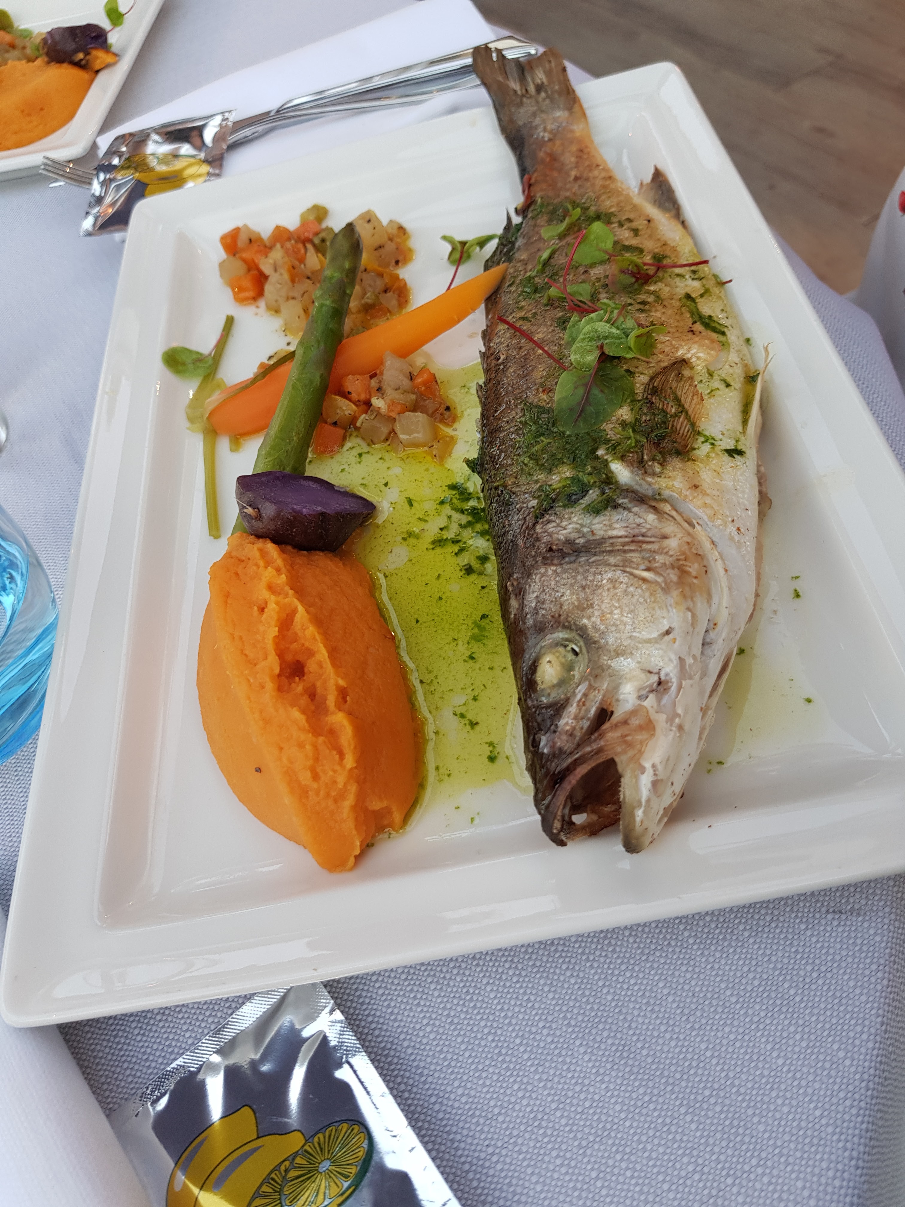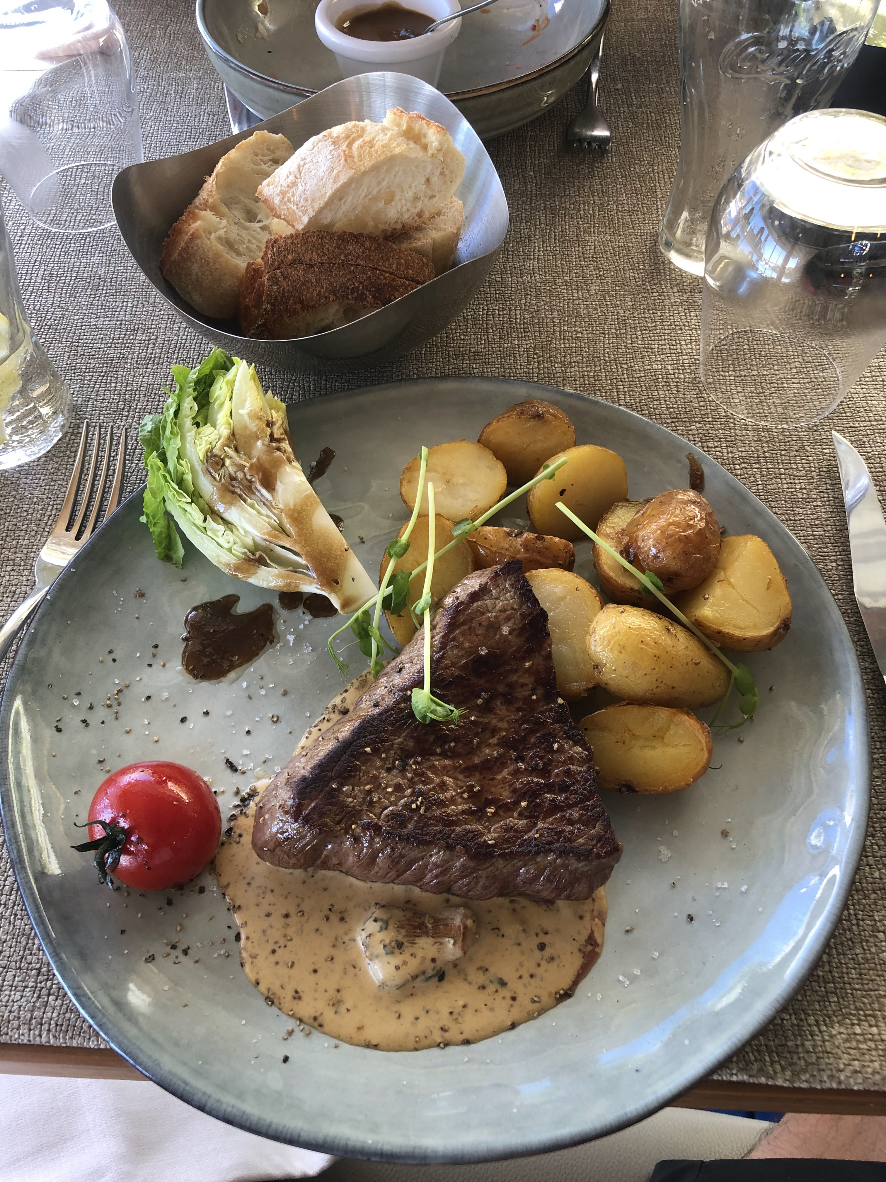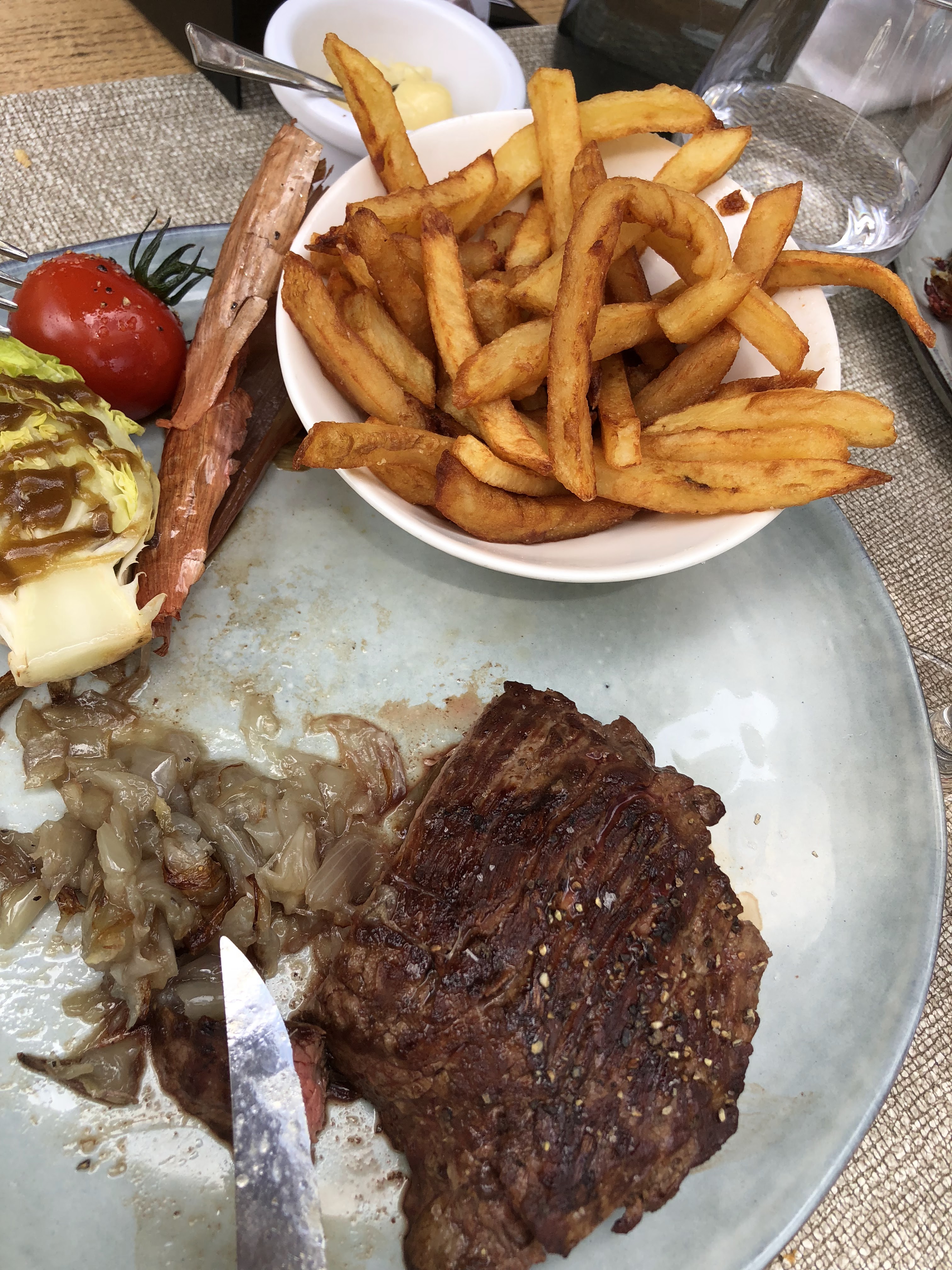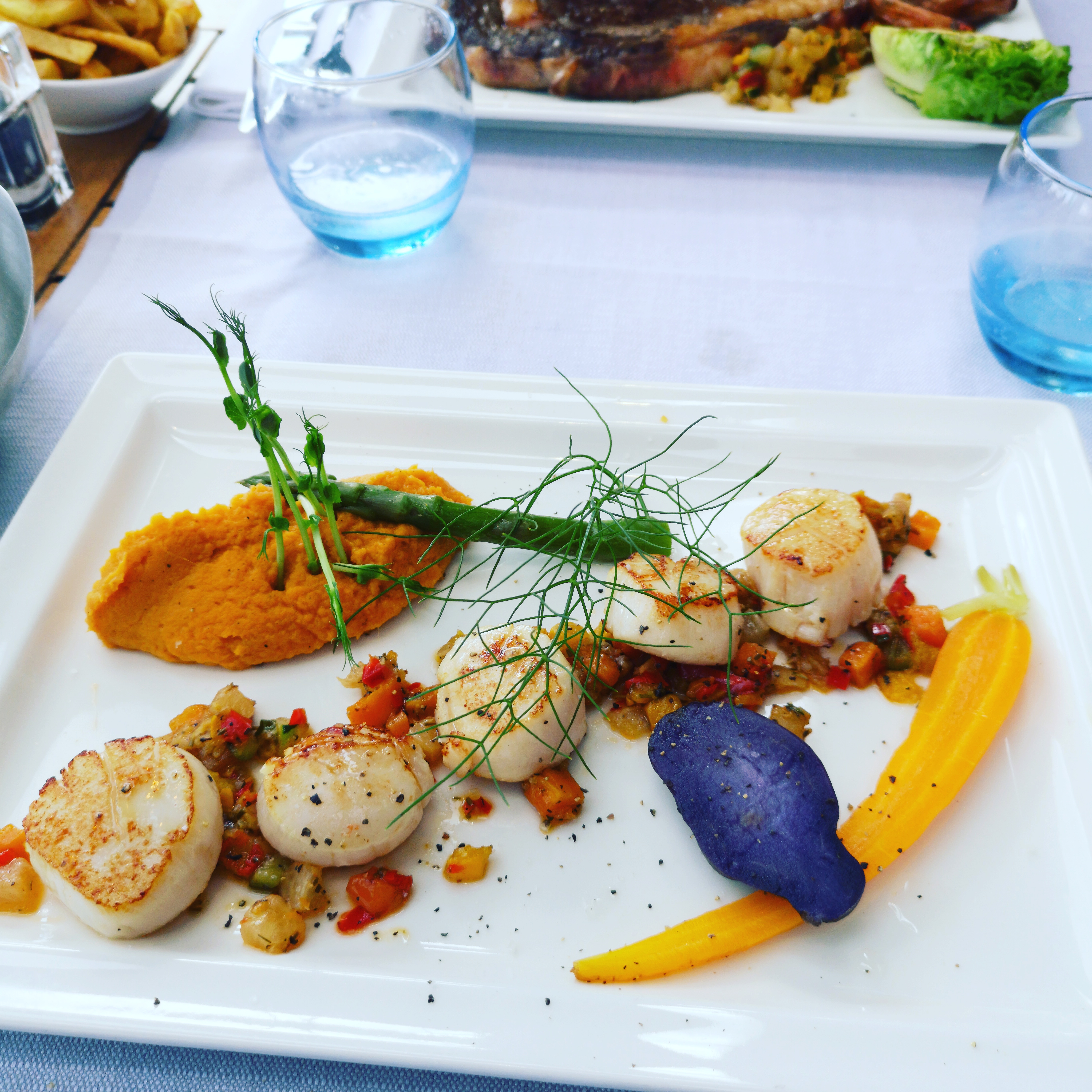 Bravo à toute l'équipe, en cuisine et au service pour nous avoir fait découvrir un onglet de veau et ses petits légumes. Et en plus on mange devant la Marina.