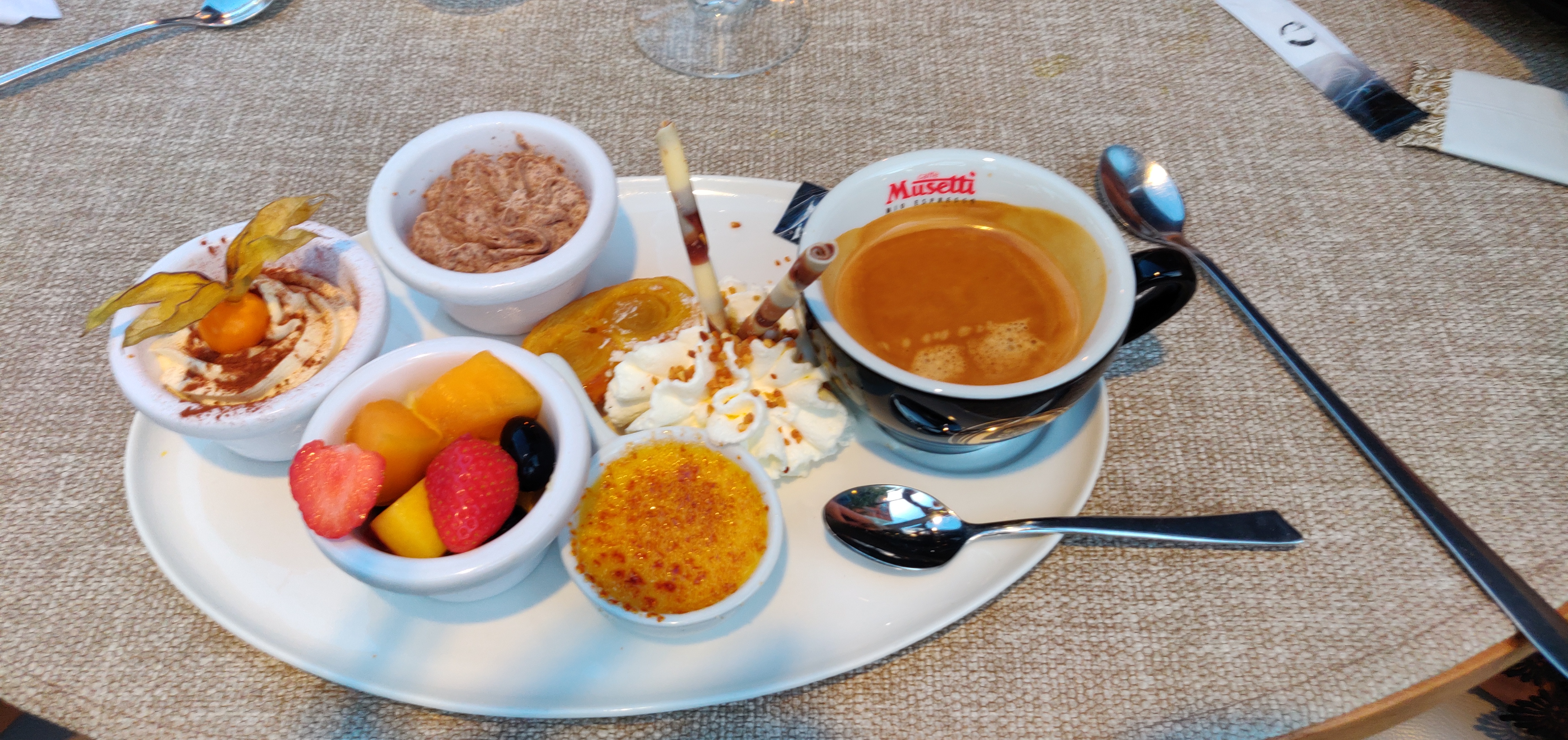 Vraiment parfait! Une serveuse au top! Un cardre Vraiment magnifique un étage à couper le souffle! Pour ce qui et de la cuisine Vraiment de belle réalisations des désert à tombé ! Bonne continuation je recommande fortement !