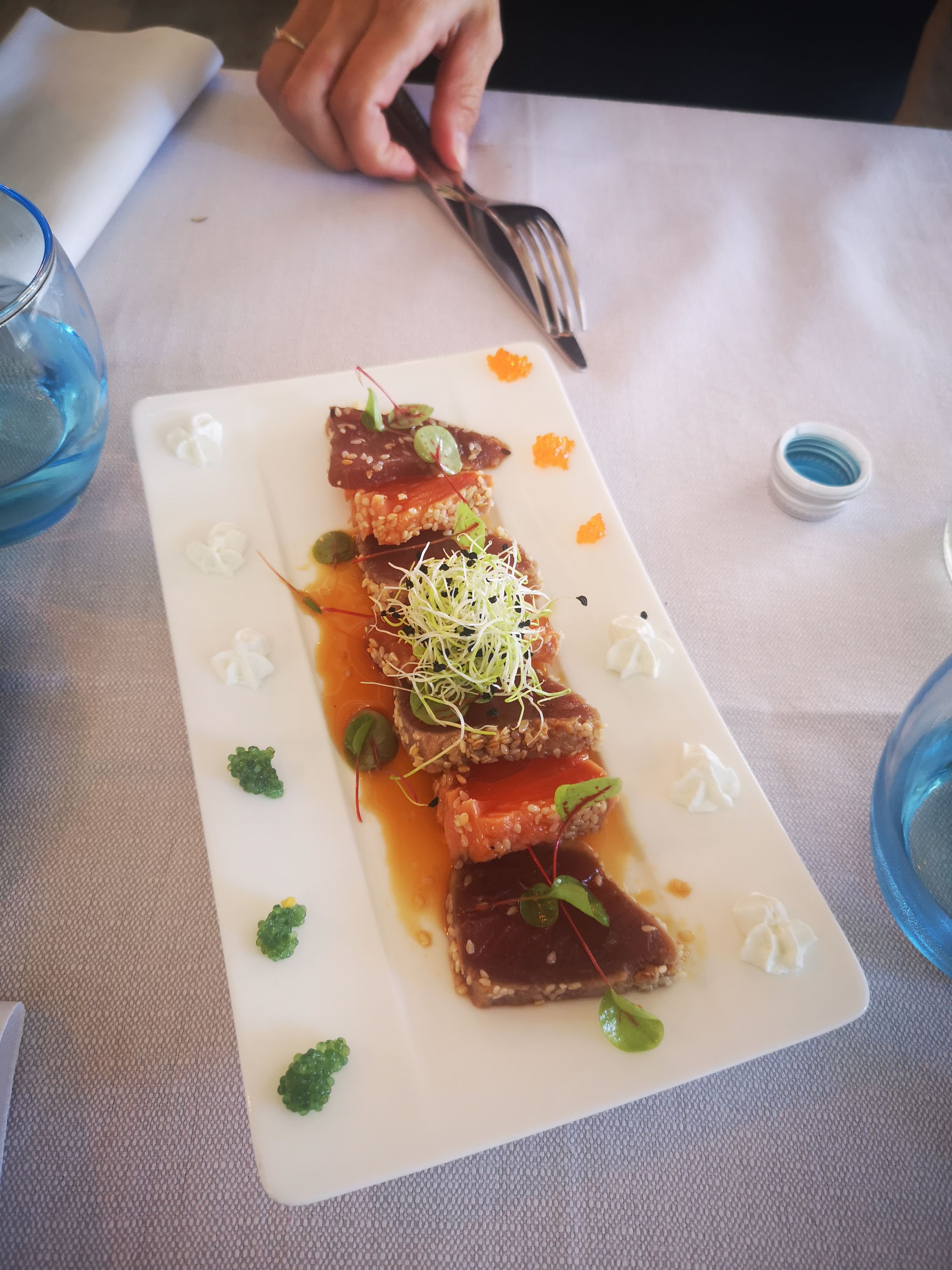Cuisine inégale et décevante. Vitello tonnato est un carpaccio de boeuf (mais bon, le boeuf est moins cher que le veau n'est ce pas !), pourquoi ne pas l'appeler ainsi ? Pâtes au gambas particulièrement décevantes, notamment au vu du prix. Seul choix de vin au verre plus que médiocre. Le tout pour une addition salée ! Très bon service en revanche ! Modif post-retour du patron : si l'avarice consiste a consciemment allé dans un restaurant à 60€/tête sur le port de PV, alors définissez moi l'opulence 🙂. -1 étoile 🌟 !