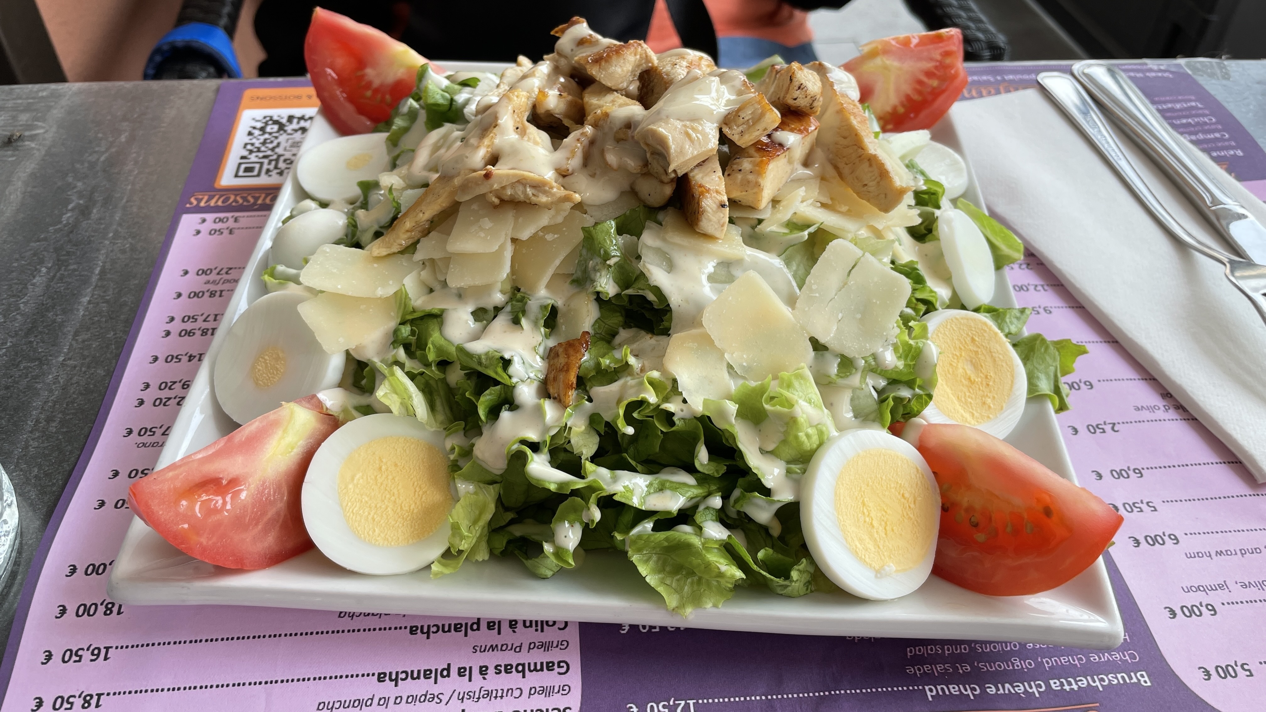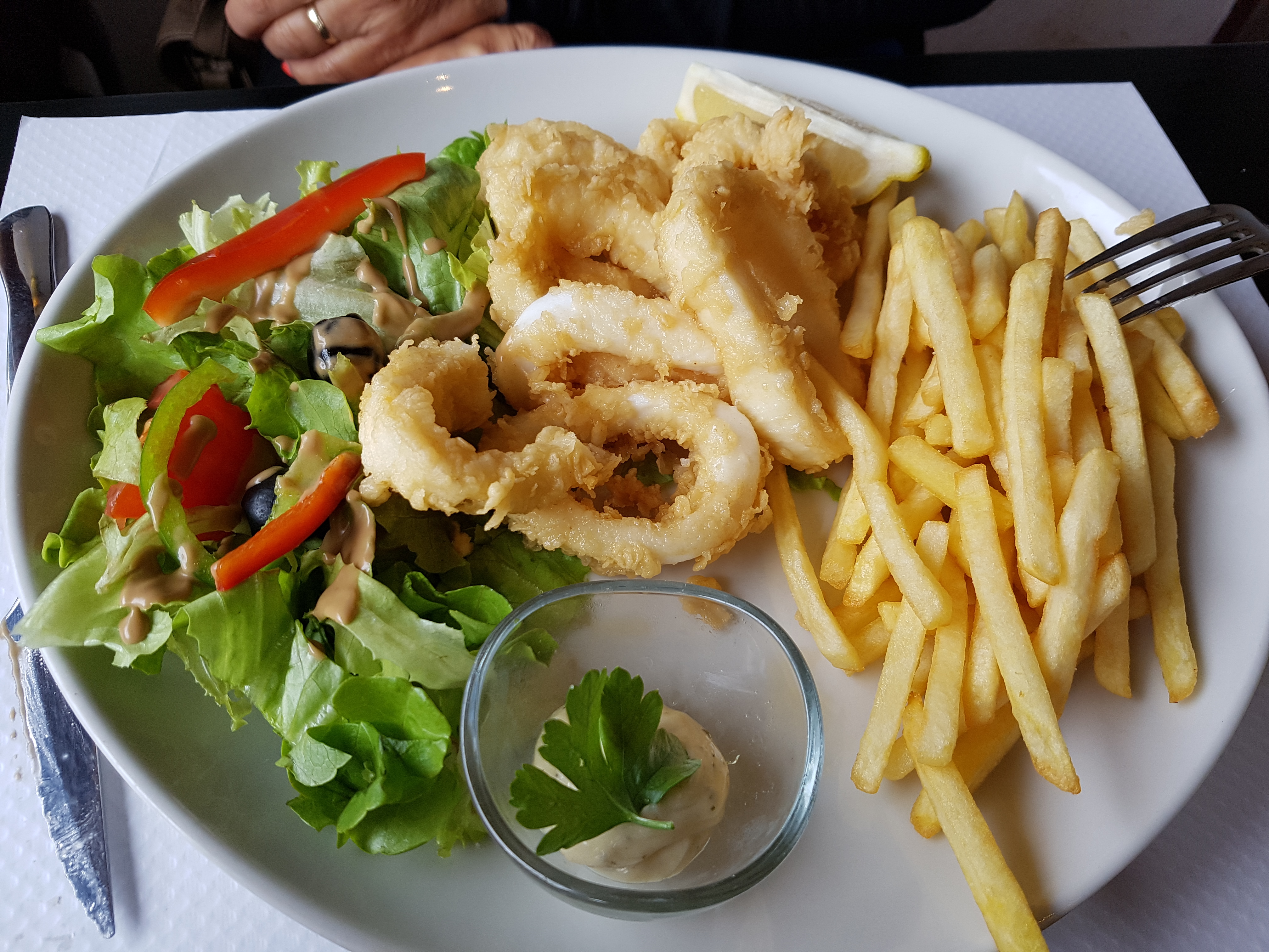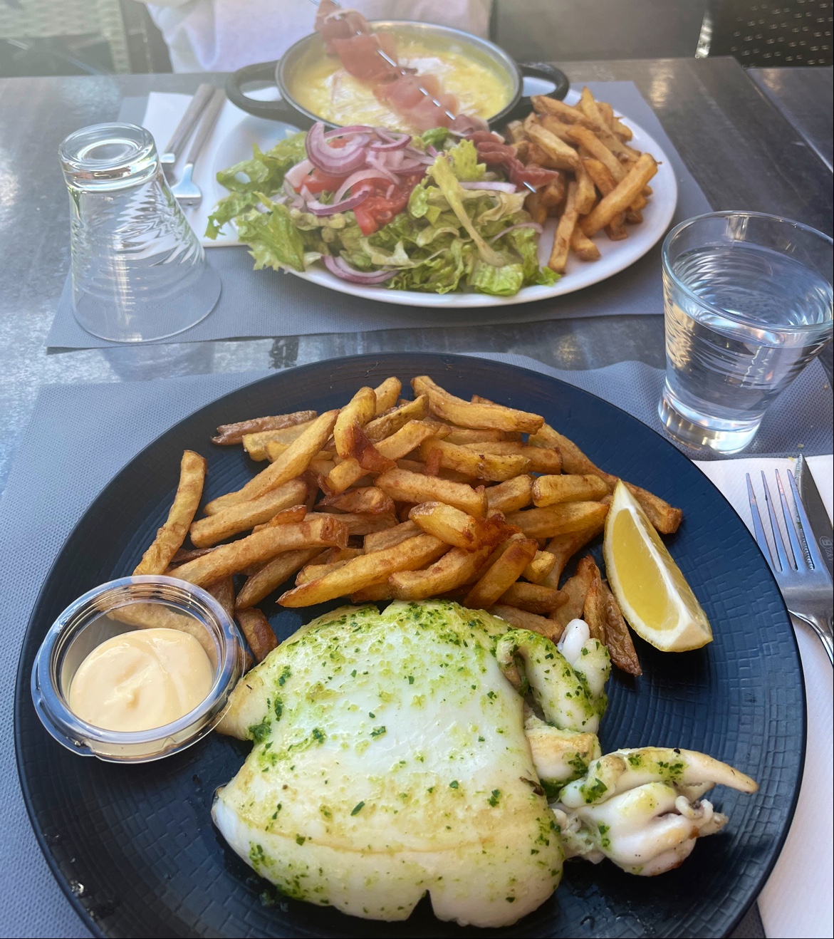 Ce restaurant mise sur son emplacement. Certes des salades généreuses, mais gonflées par une grande quantité de salade. Vinaigrette et sauces industrielles. Y compris l'aïoli. Les légumes étaient bien cuits. Au regard de la qualité, nous avons trouvé l'addition salée. Cuisine de snack et non de restaurant.