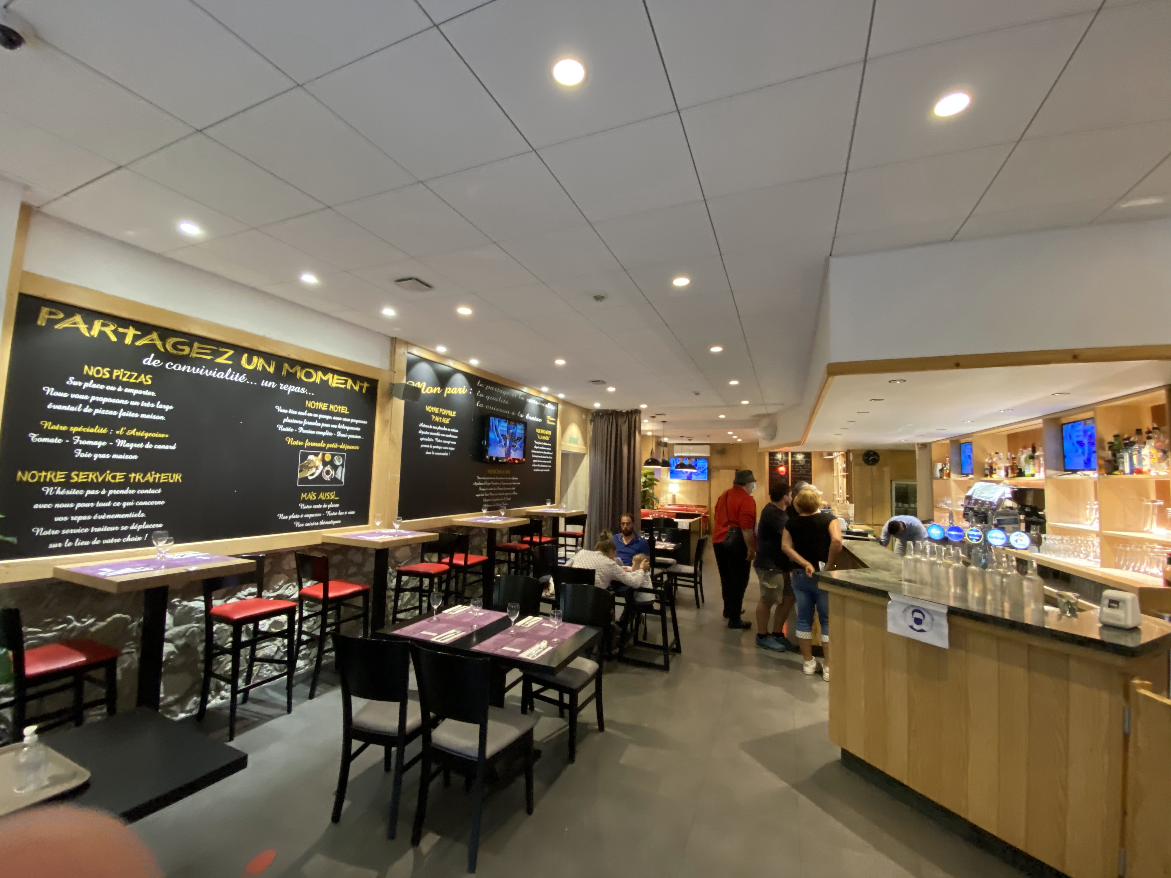 Le restaurant est très bien situé en plein centre. Il y a une jolie vue sur la rivière. Les plats sont bons. Il y a 2 salles et 2 ambiances. L’une est en face du bar, il y a des grands écrans, on peut manger tout en écoutant de la musique. Et l’autre est très romantique car il est face à l’Ariège.