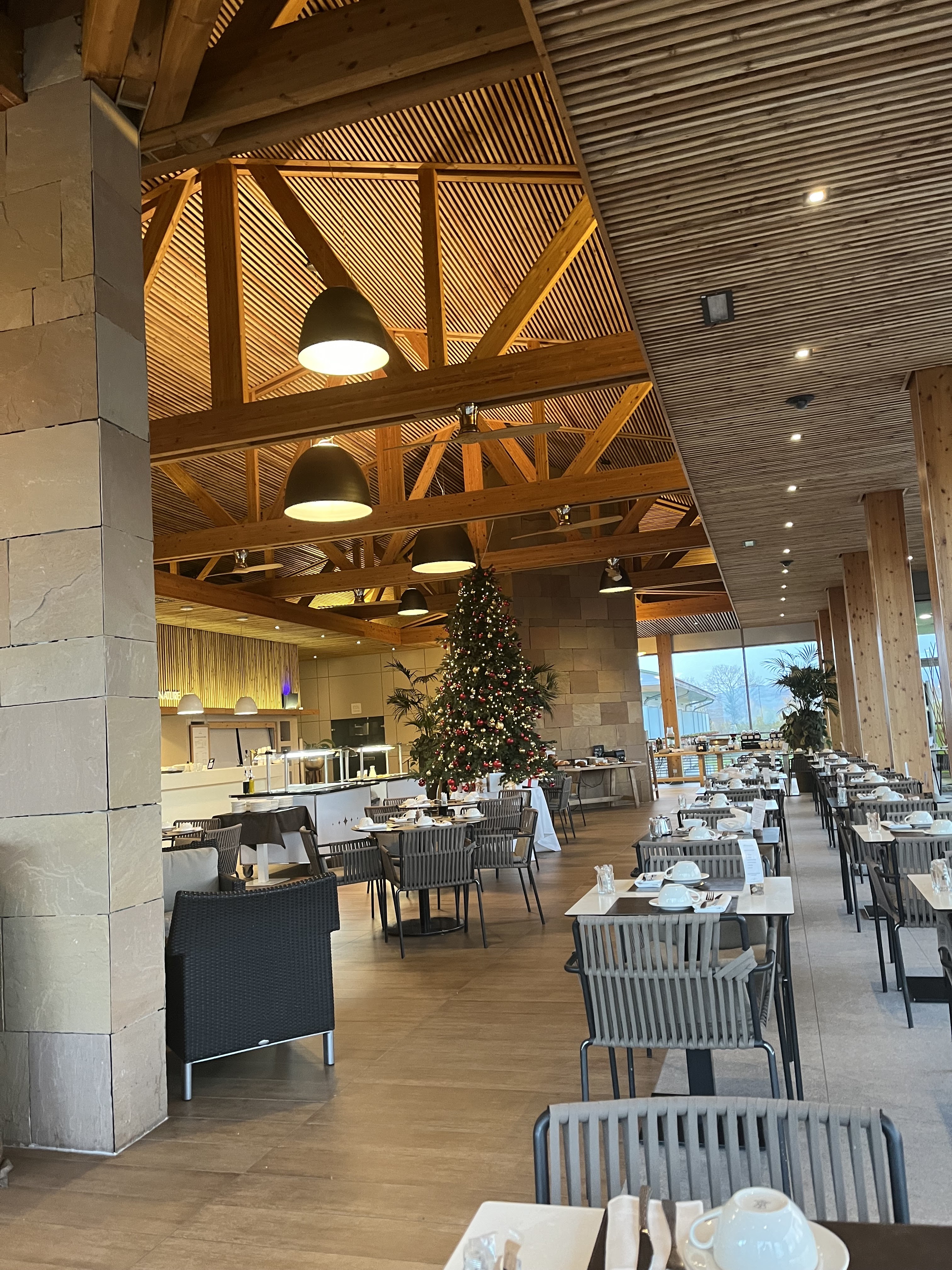 Un très bel espace avec une superbe vue et une très belle cheminée. La restauration sous forme de buffet est de qualité et d'un bon rapport qualité pour le lieu, elle convient parfaitement après ou pendant une séance au spa ou même après une marche dans les environs. La note attribuée est sous-évaluée, je pense que la plupart des personnes ayant émis un avis et les grincheux ont oublié que l'on n'était pas à la piscine municipale... suis un client régulier et satisfait...