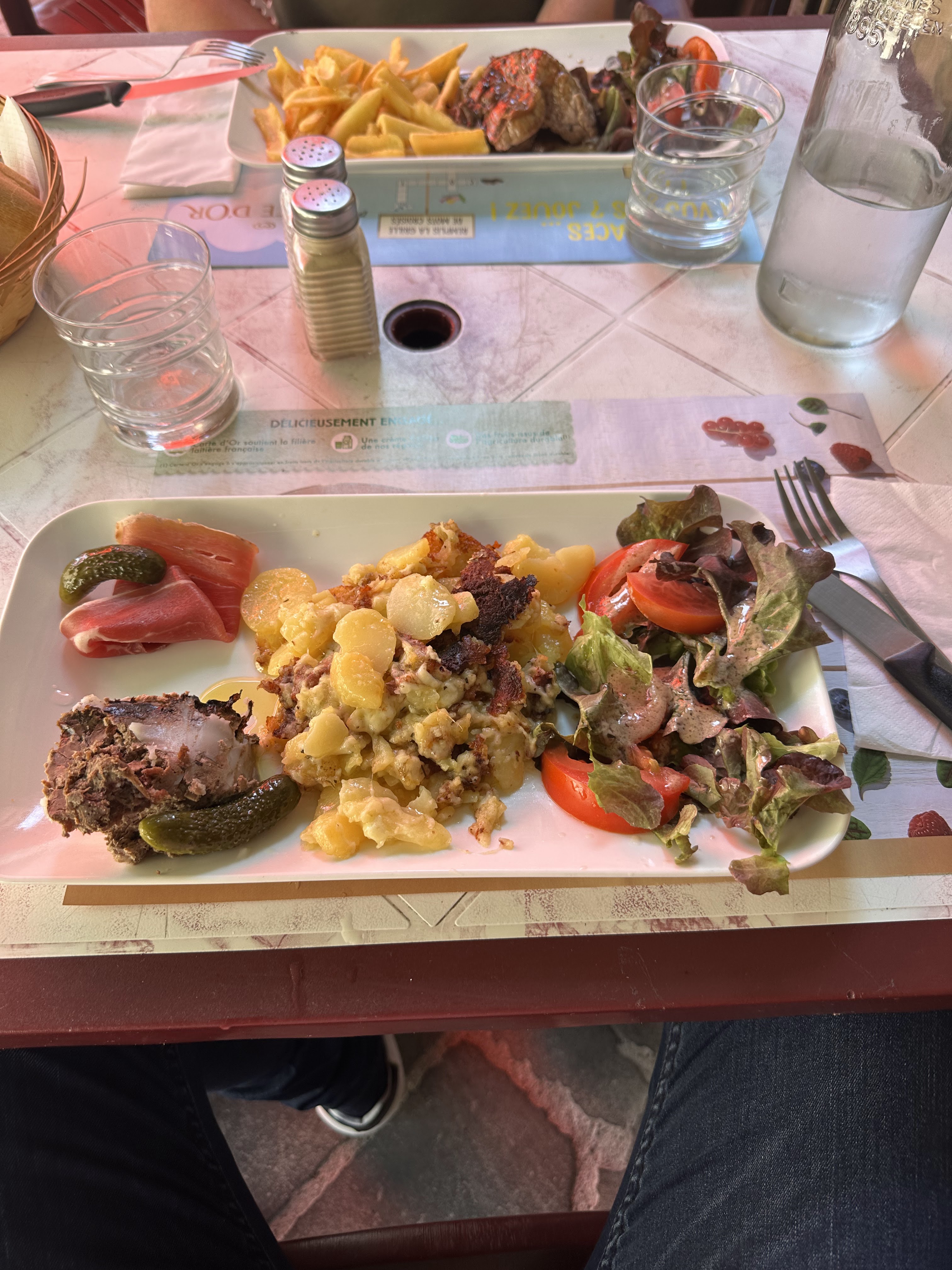 Un restaurant très bien placé avec un cadre sympathique mais il ne faut pas être pressé. Cuisine correcte mais il faut également faire preuve de souplesse au niveau de sa commande : salade de crudité avec terrine servie avec du jambon, chaud froid de lentilles normalement avec jambon mais finalement sans, truffade qui ressemble pas vraiment à de la truffade. Bref peut mieux faire.