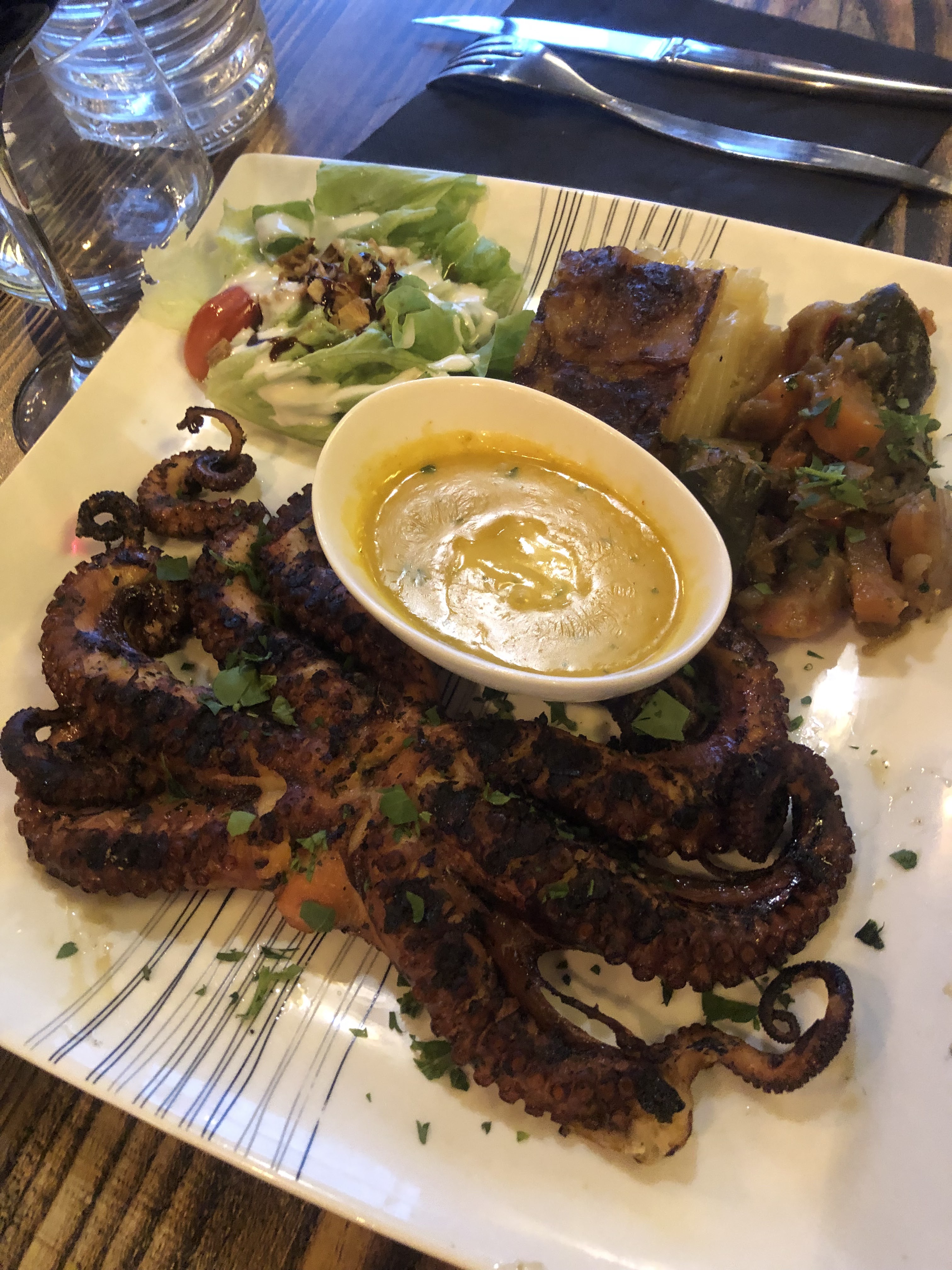 Avec beaucoup de surprise il y avait du poulpe au menu qui était délicieux ! J'ai appris que c'était une spécialité de l'établissement, je vous le recommande !