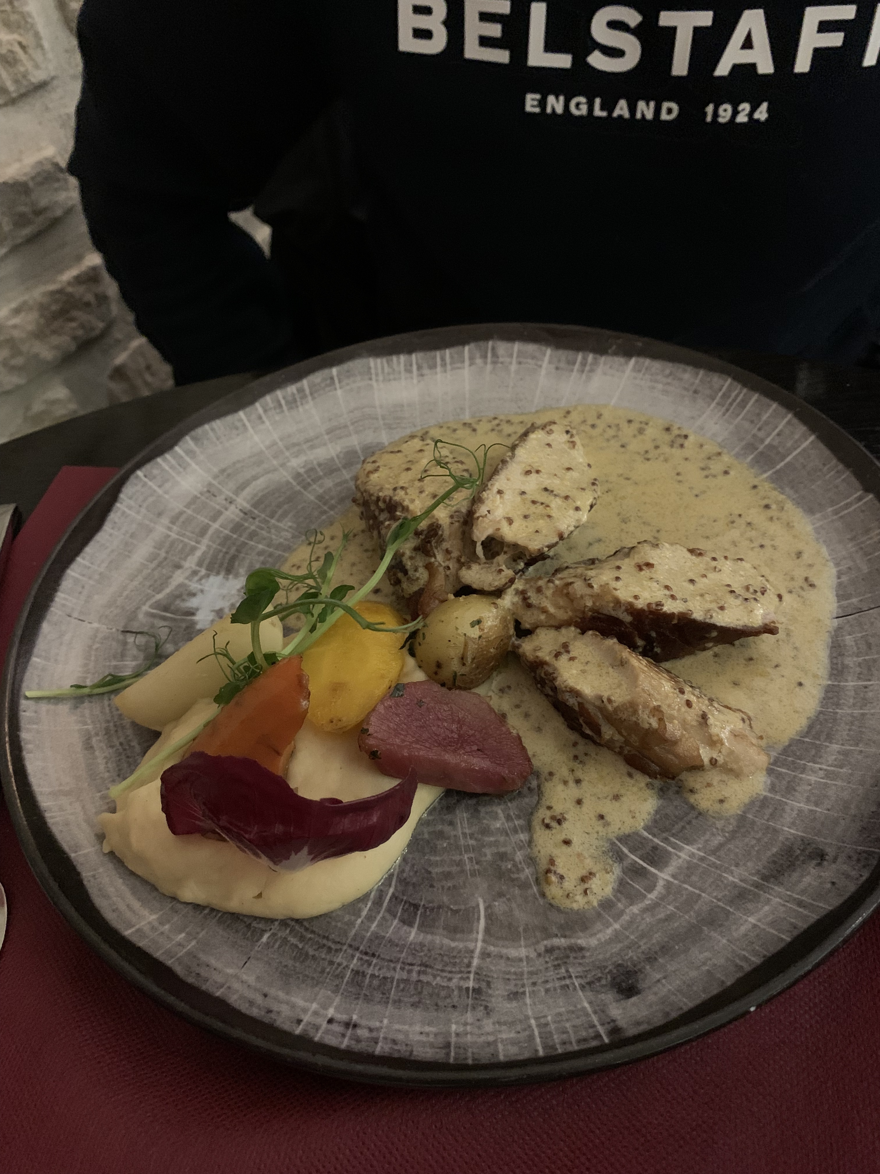 Nous sommes tombés par hasard sur le Binjamin car il était proche d'un excellent gîte Airbnb dans lequel nous nous sommes arrêtés pour une nuit, alors que nous traversions la France en route vers Andorre la semaine dernière. Très populaire; complet un jeudi soir de janvier et nous avons eu la chance d'avoir une table lors de la réservation cet après-midi-là. Des ingrédients frais merveilleux, magnifiquement préparés, cuits à partir de zéro pour produire des plats savoureux et satisfaisants. Personnel sympathique et efficace. Nous y retournerions certainement. Un autre restaurant français qui accepte les chiens ! Merci beaucoup le Binjamin 😻