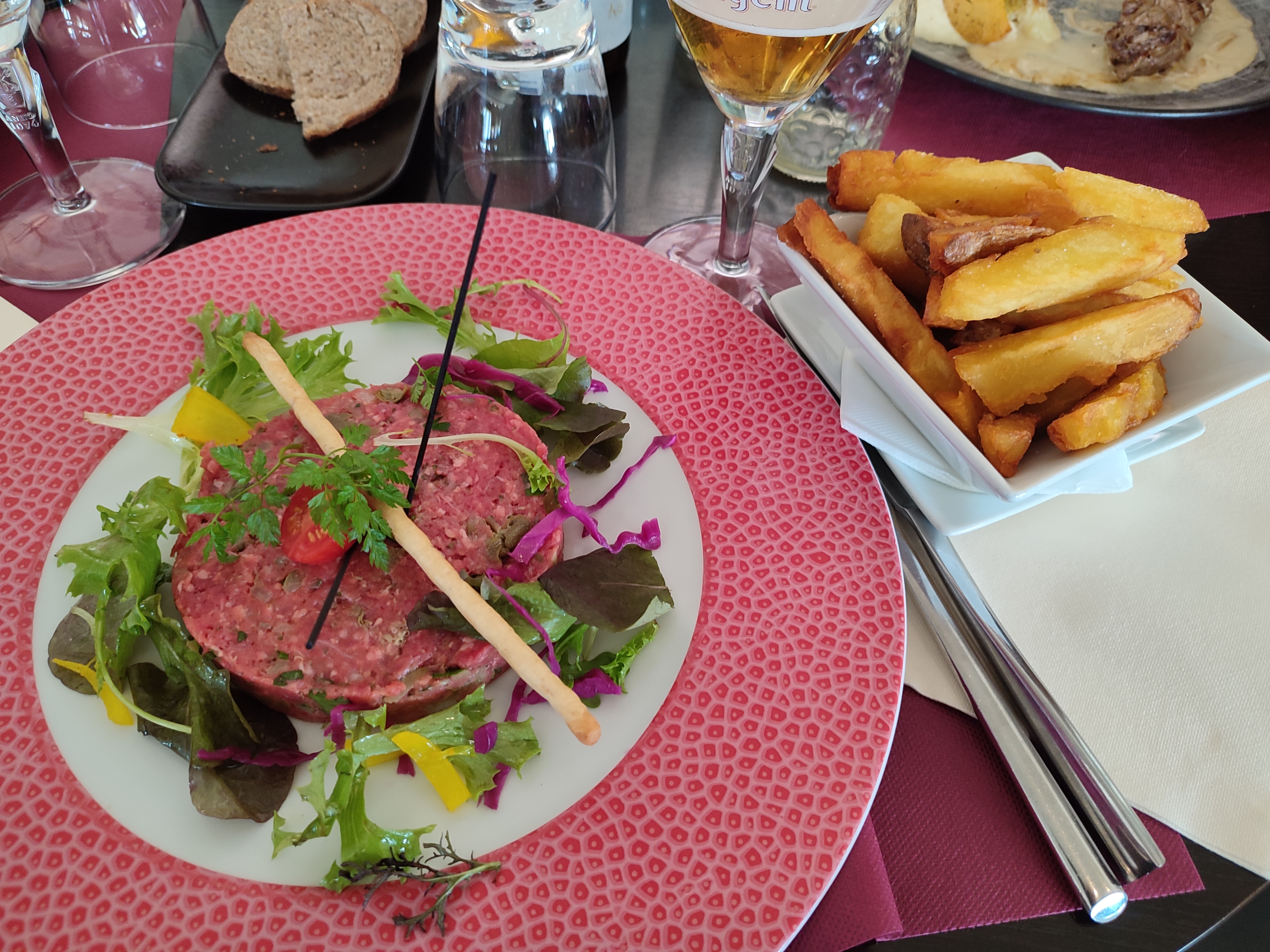 Tartare de bœuf insipide... frites tièdes et collées les unes aux autres.