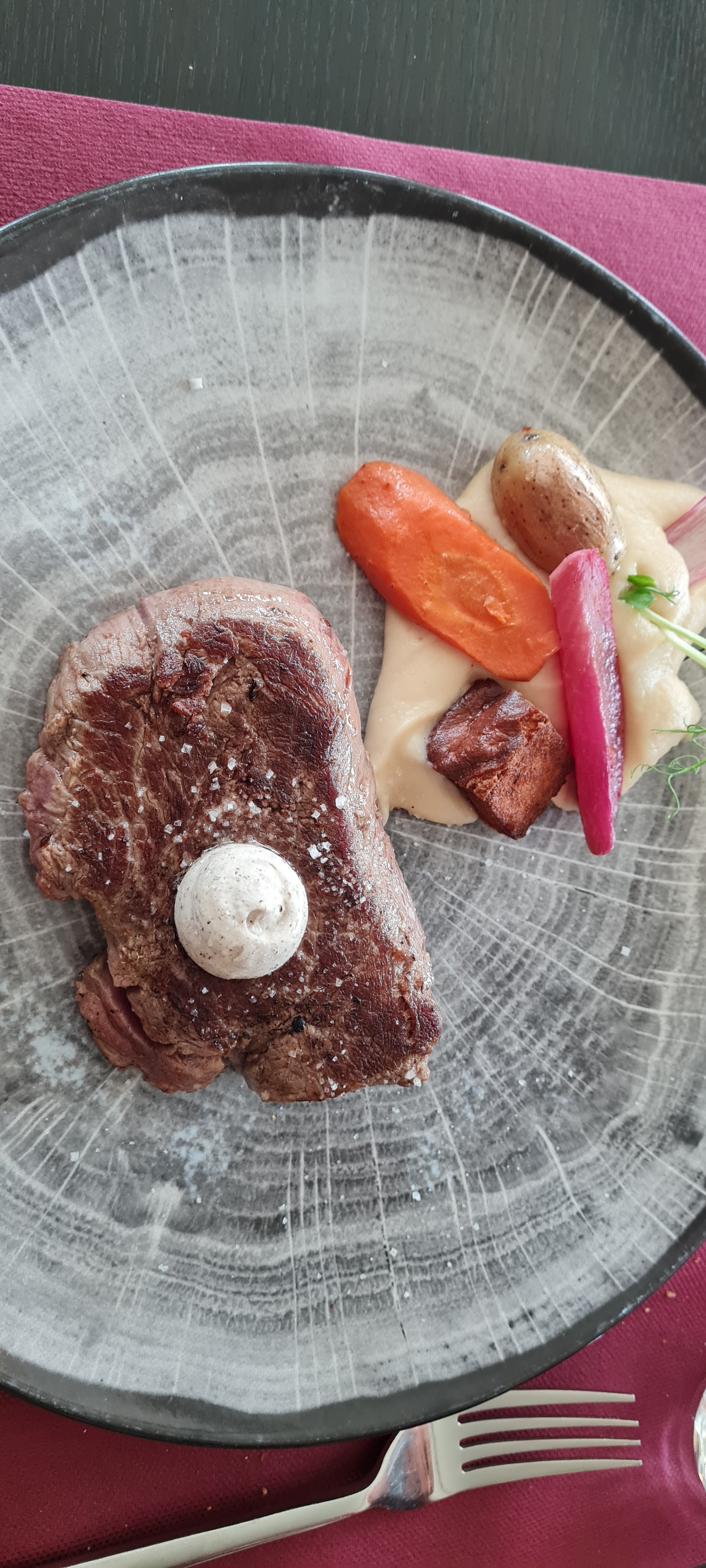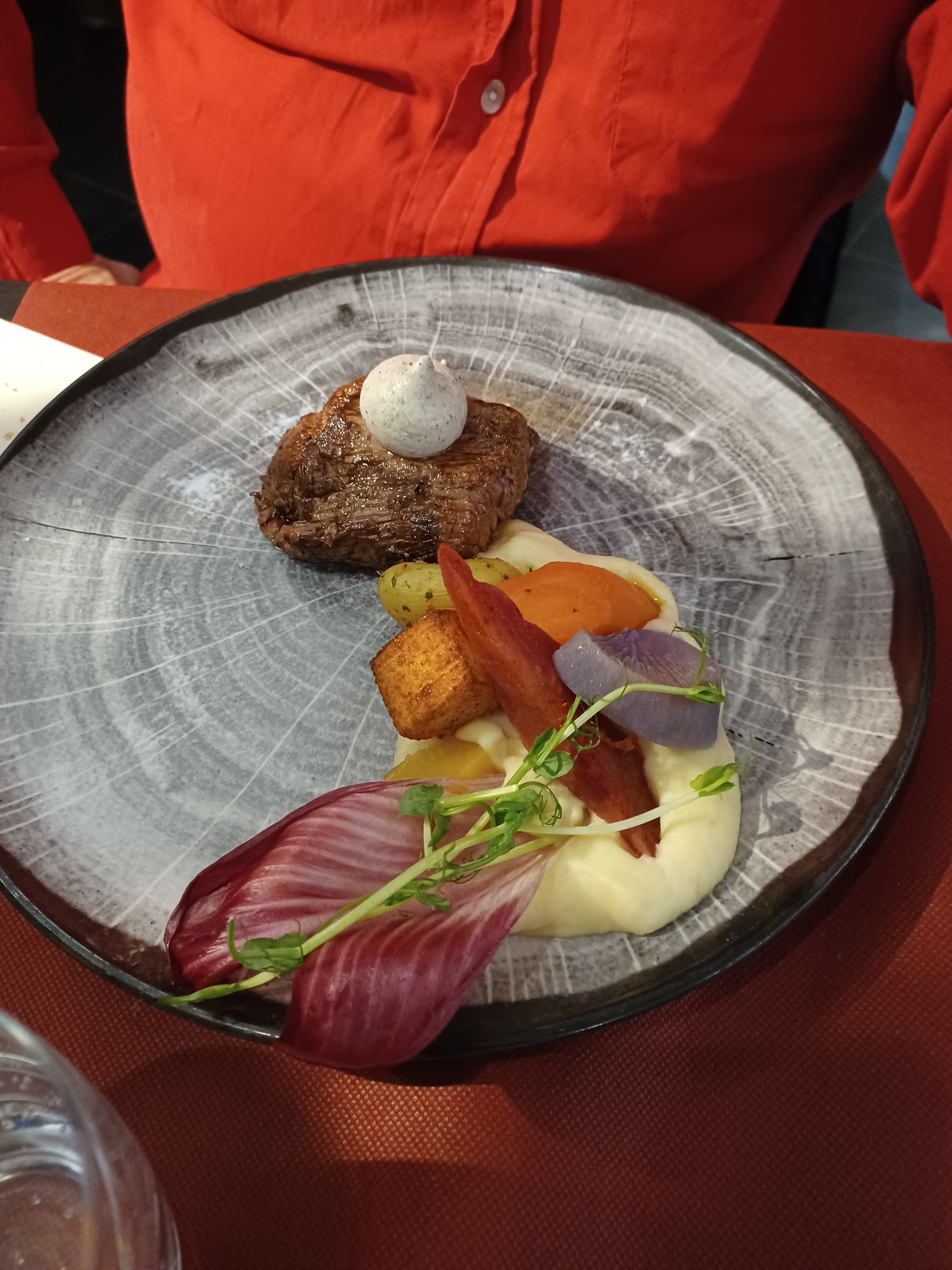 Le repas était délicieux. Viande cuite à la perfection, petit bémol sur les légumes croquants qui manquaient légèrement de cuisson pour certain. Le service était très bien malgré quelques petites fausses notes de l'un d'eux. Personnels agréables et accueillant.
