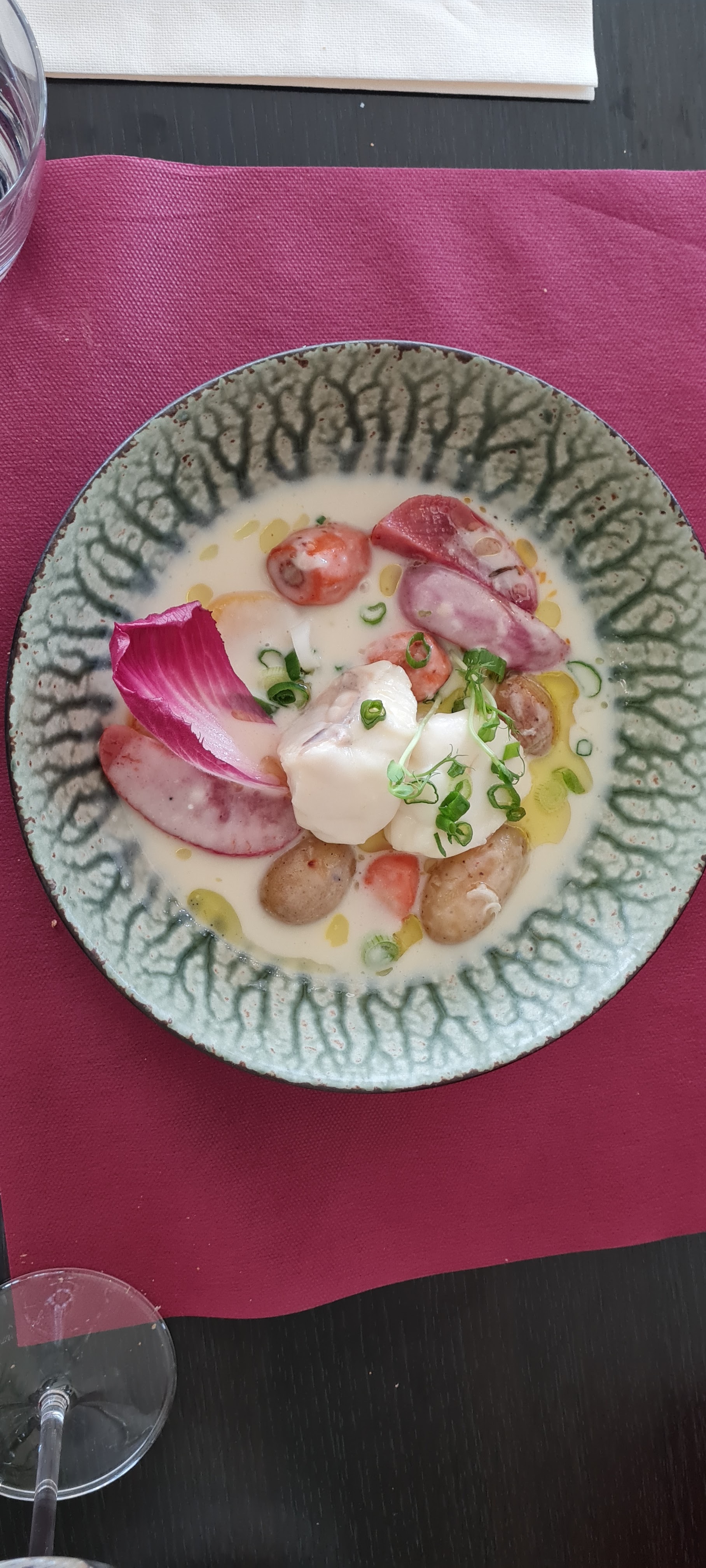 Excellent en tout....cadre intérieur et extérieur. ..personnel très aimable. ..cuisine très raffinée et goûteuse