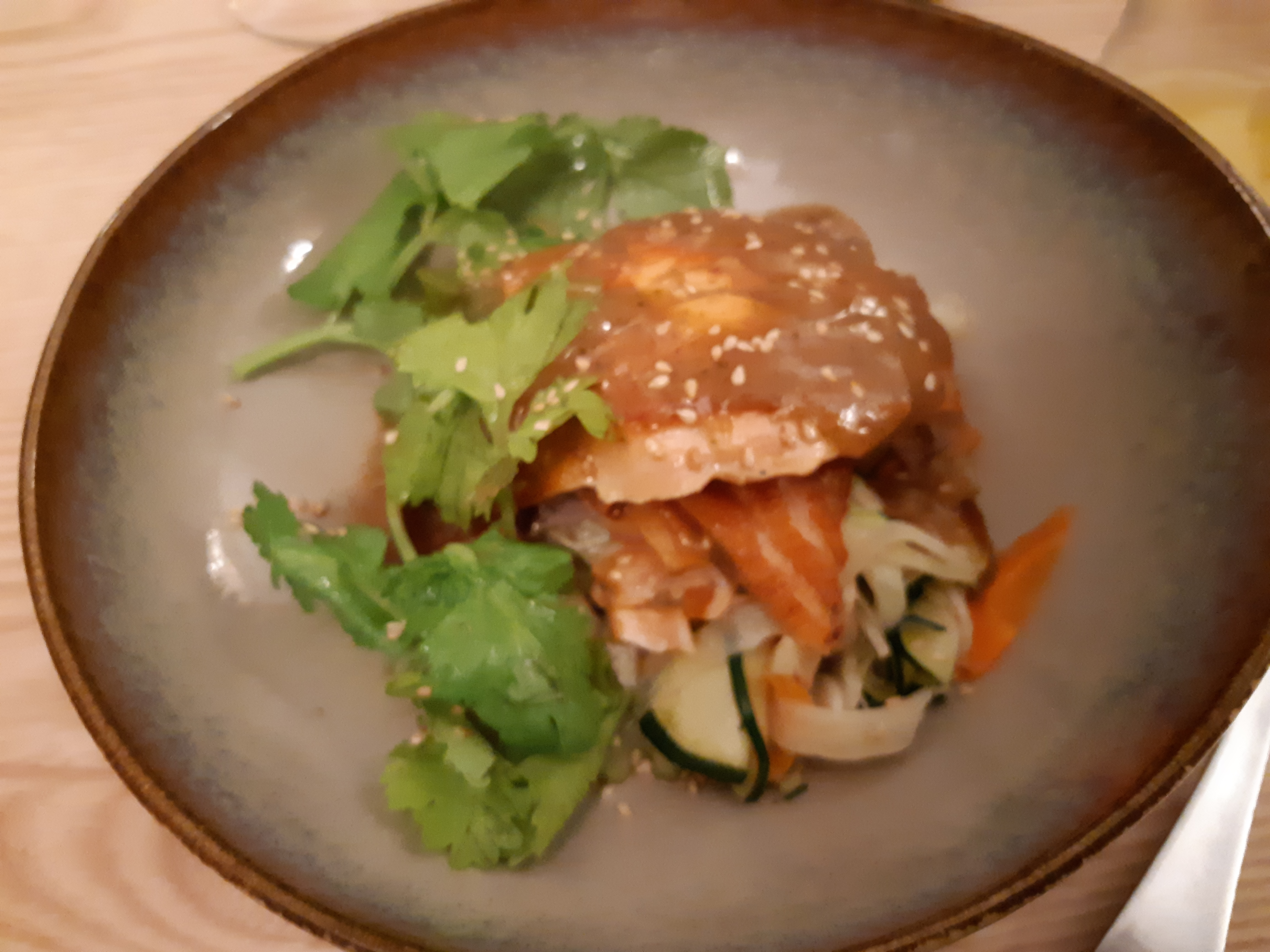 Pas mal. La soupe type Tom Yum n’était pas mal mais tout de même vraiment trop citronnée. Le croustillant d’agneau n’était pas mal mais un peu juste en accompagnement. Le Tataki de saumon était bon. Le menu enfant avec poulet en sauce (très bonne) et purée était vraiment servi trop chichement avec une minuscule quenelle de purée, mon fils de 5 ans avait encore faim. L’accueil, sans être désagréable, n’était pas très chaleureux non plus. Le service trop long, que ce soit pour la prise de commande ou le service des plats.