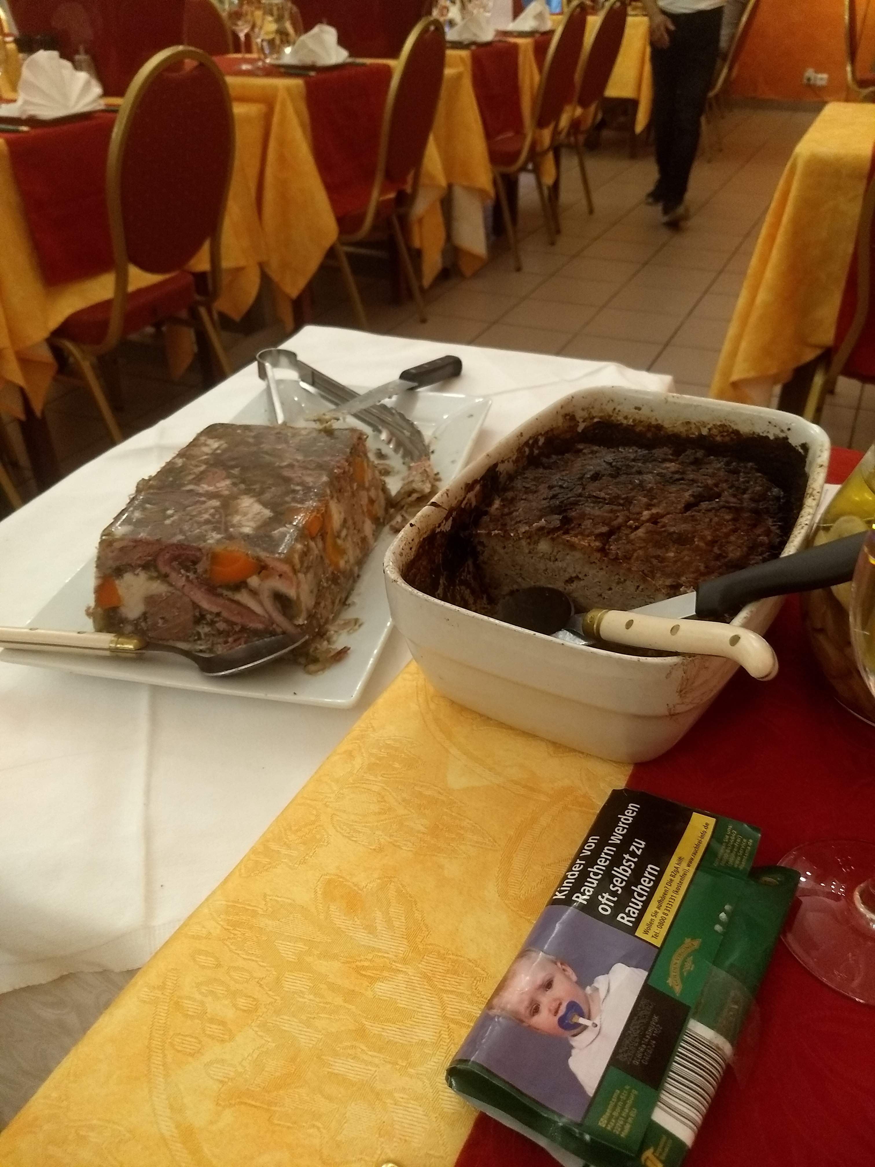 Très agréablement surpris... Une terrine maison offerte en début de repas (fait maison, plat de 2kg de terrine sur la table, a volonté..) Champignons au vinaigre et poivrons au vinaigre pour accompagner (1 carafe de chaque)... Puis arrive le pâté de tête fait maison, encore offert... Ça commence bien. Le personnel et d'une extrême gentillesse, le cadre est très agréable, et le repas qui a suivi était juste excellent... Buffet de fromage et de dessert à volonté... Incroyable A refaire très vite.