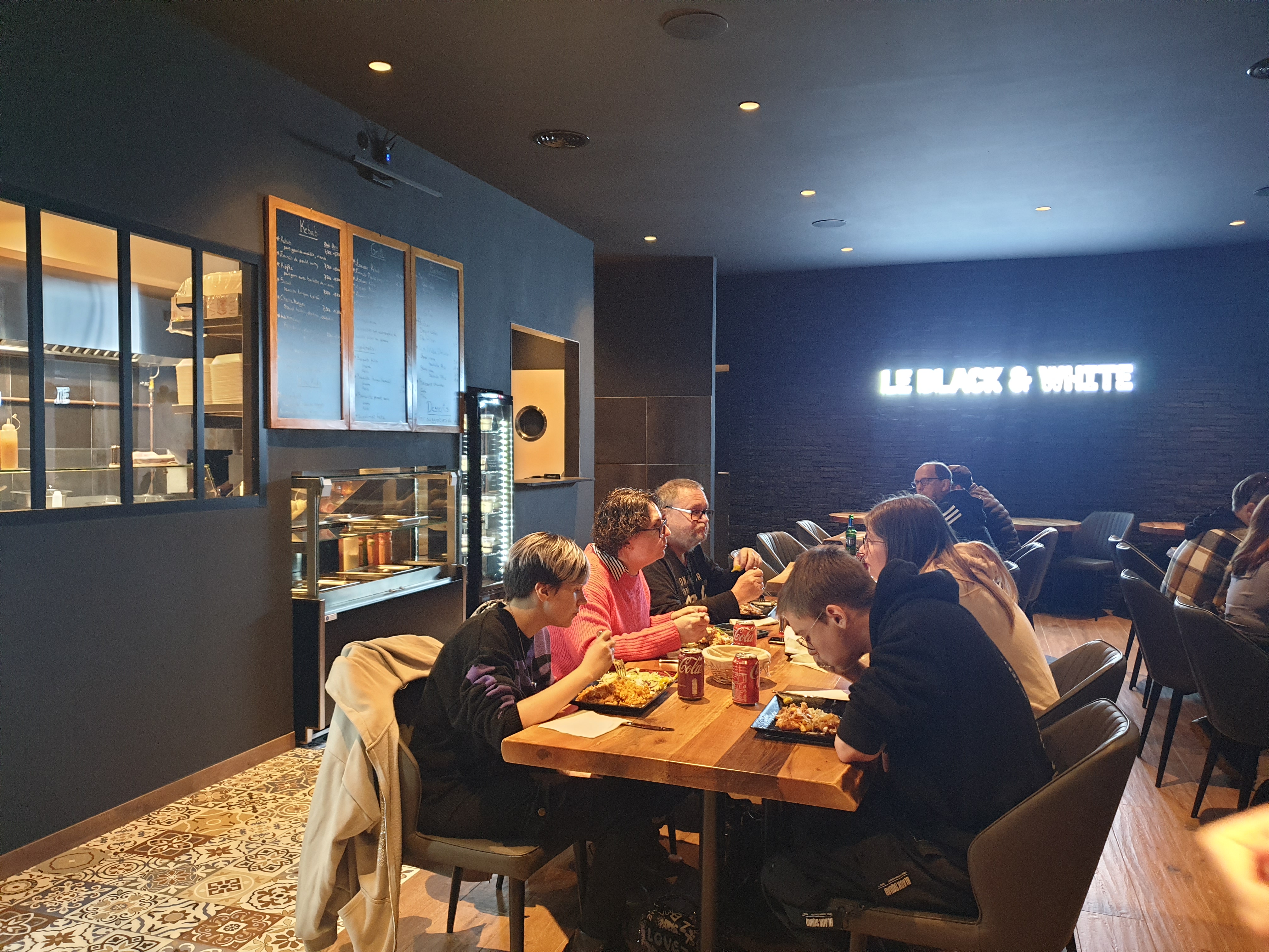 Soir d'ouverture, à emporter, du monde au rdv donc pas mal d'attente mais normal pour une première. Personnel très sympathique, restaurant magnifique déco top niveau ! Et repas excellent ! Vraiment trop bon ! Nous reviendrons régulièrement car très contents d'avoir une super kebab près de chez nous ! Merci à vous black and white d'avoir repris cet établissement avec autant de soin !