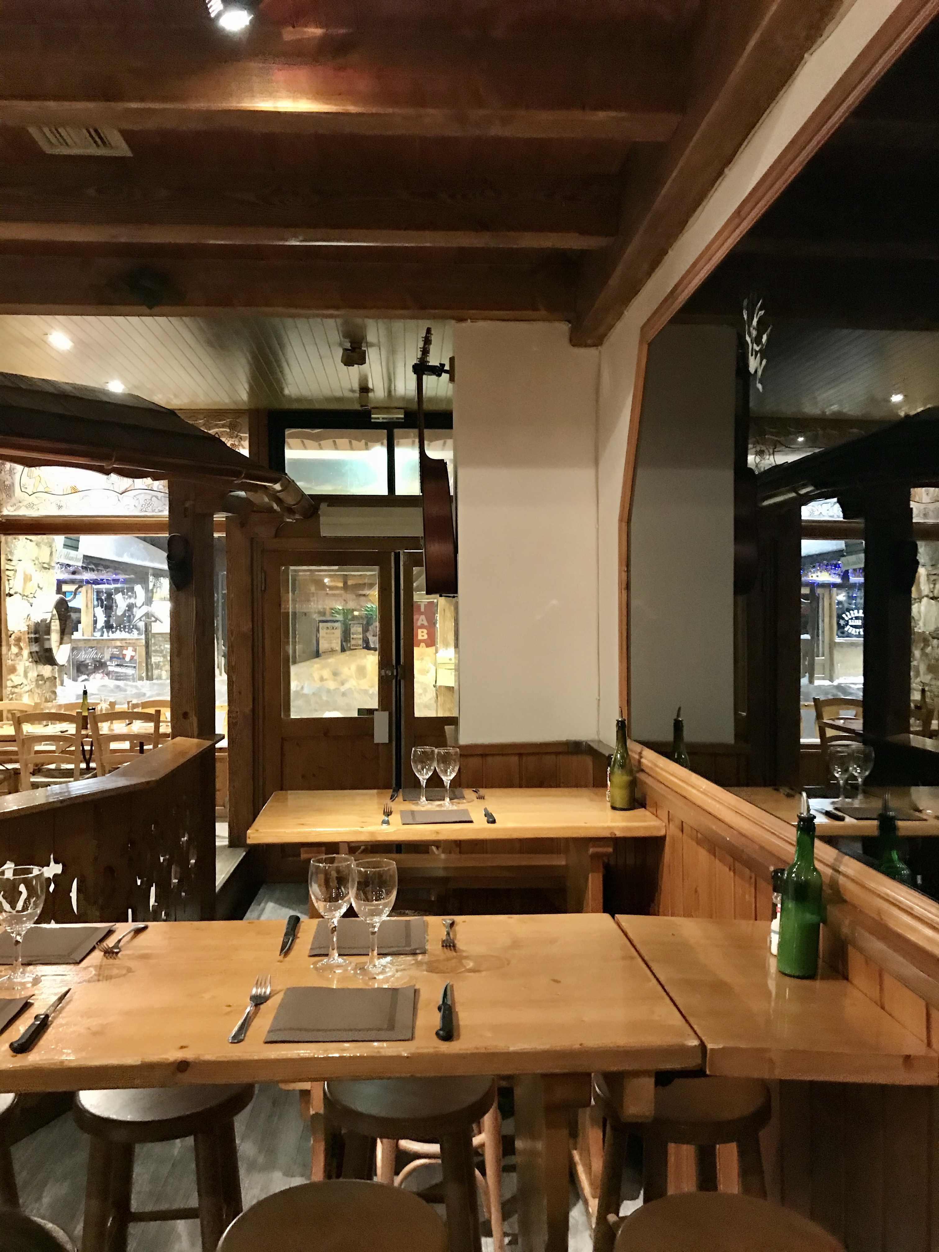 Quelle déception. Si vous connaissez ce lieu des années précédentes, vous risquez de ne pas savoir où vous êtes. Choix très limité, tartiflette pas mauvaise mais petite et avec de bons lardons allumettes industriels. Vin maison à ne pas tenter, pourtant servi à 4€ le verre. Lorsque nous avons fait la remarque au serveur, pourtant effacé jusque là (contrairement à sa collègue que nous connaissions visiblement vu le tutoiement constant), le réveil fut immédiat : ah mais vous pouvez aller ailleurs, c'est le même prix. Sans doute, mais probablement pas un vin du pays d'Oc (sic) qui est en réalité un vin d'origine européenne (comme indiqué sur les cubis présents en salle). Merci pour le génépi, ceci dit.