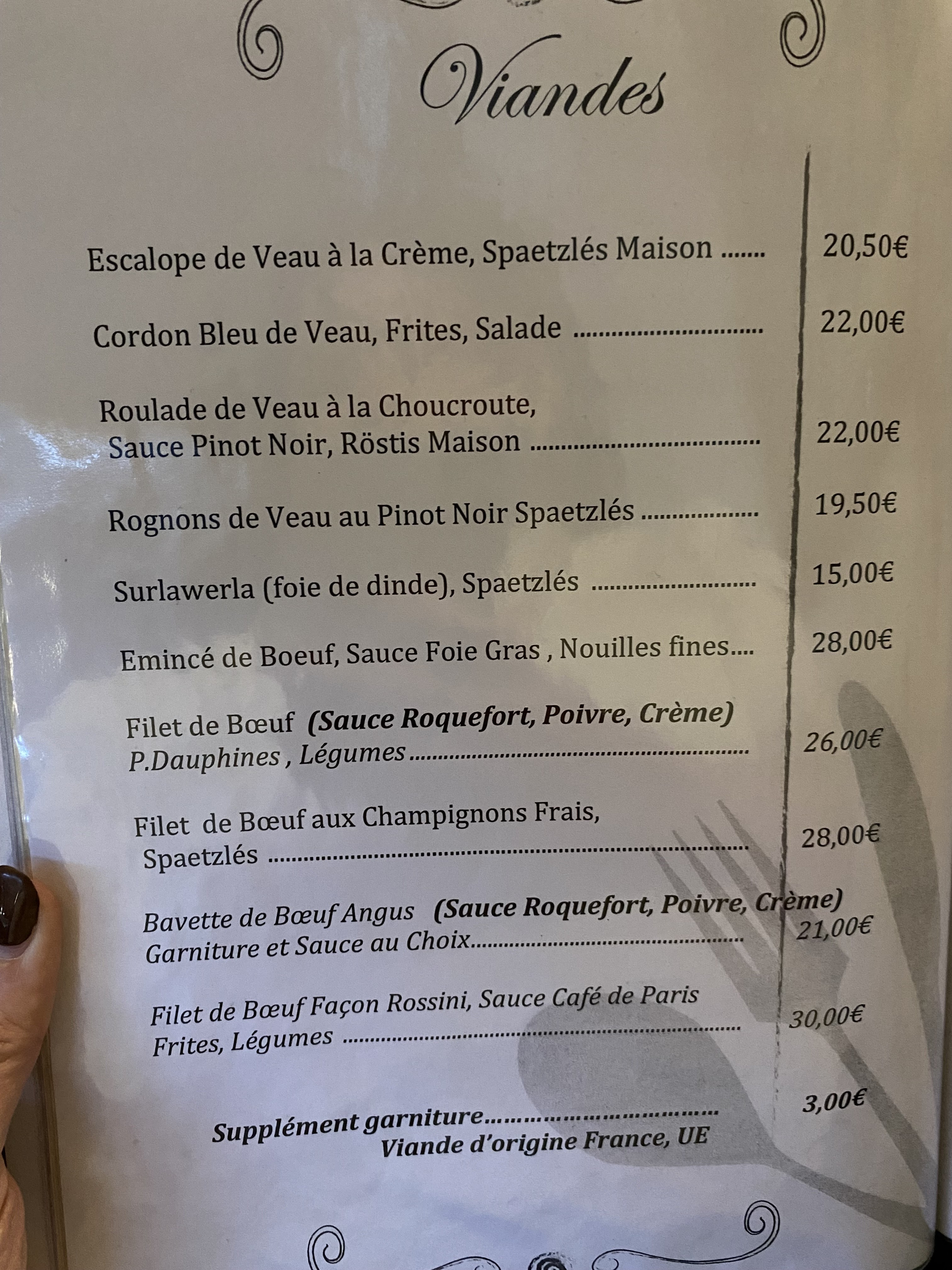 On commence par les points positifs: serveuse (patronne?) très gentille et serviable, de bons plats, spaetzles maison excellents avec une bonne quantité dans l'assiette. Maintenant les points négatifs, obligé de demander pour avoir du pain, du sel et du poivre. Pour moi, ce sont des essentiels sur une table française que l'on n'a même pas besoin de demander. Frites surgelées malheureusement, même si je comprends que tous les restaurants ne peuvent pas proposer de frites maison. Viande de porc trop grasse. C'est pour ces 3 raisons que j'enlève une étoile.