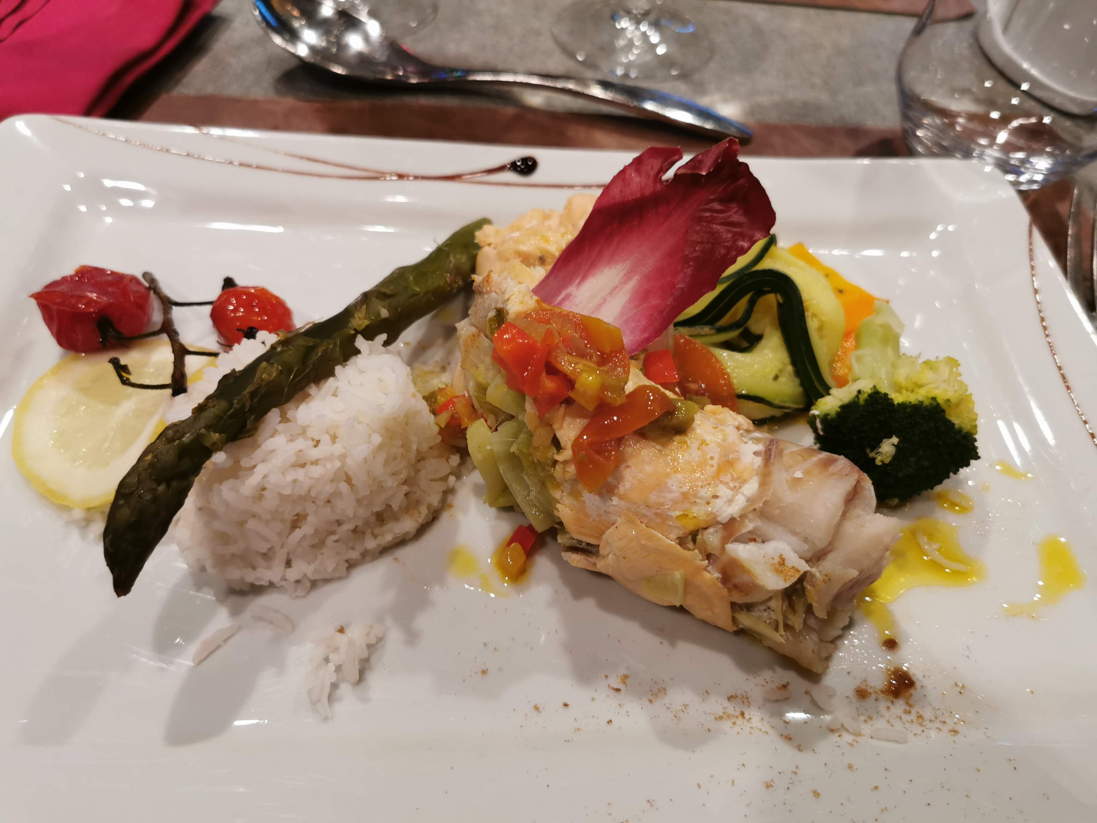 Énorme ! Juste équilibre des saveurs ; choix audacieux et réussis. Exemples : merlu + choux de Bruxelles rôtis, ceviche de cabillaud, Dos de lieu noir vapeur courge spaghetti et concassé de tomate, une tuerie !...