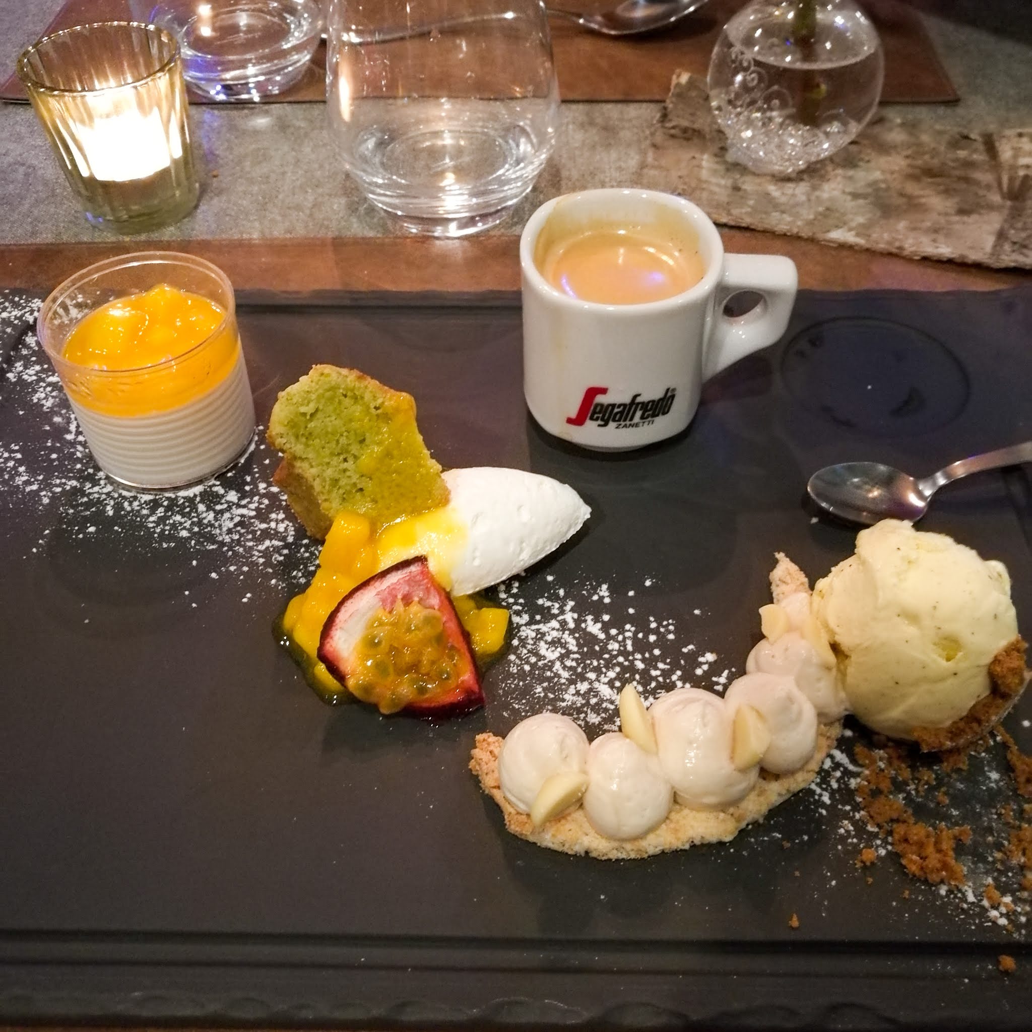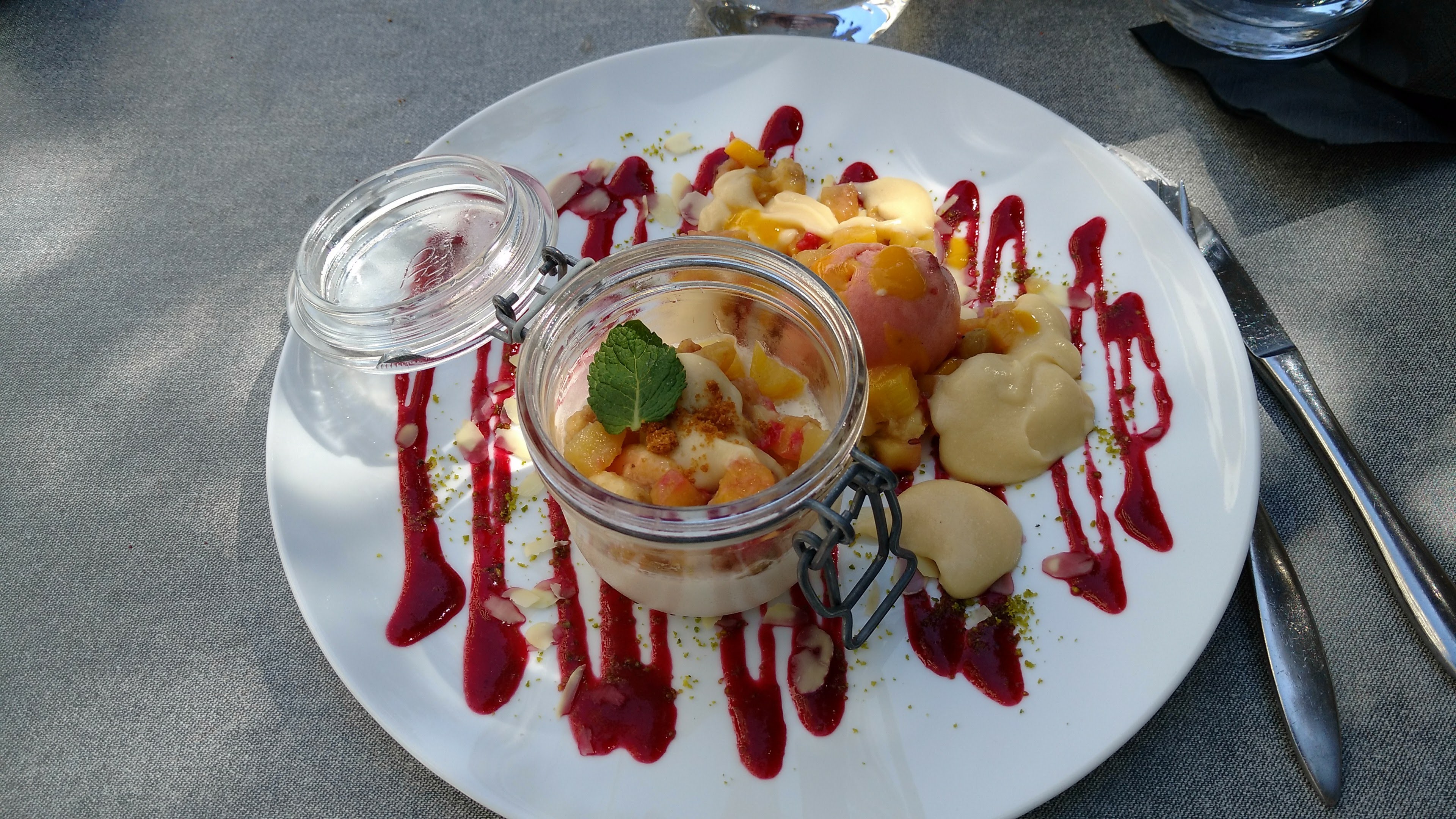 Quelle belle table, nous avons pris le menu à 29 euros avec nos amis, une entrée exquise, un plat merveilleux et pour finir un dessert magnifique. Un restaurant incontournable lors de votre passage dans le secteur. PS: désolé tellement appétissant que je n' ai que les photos des desserts.