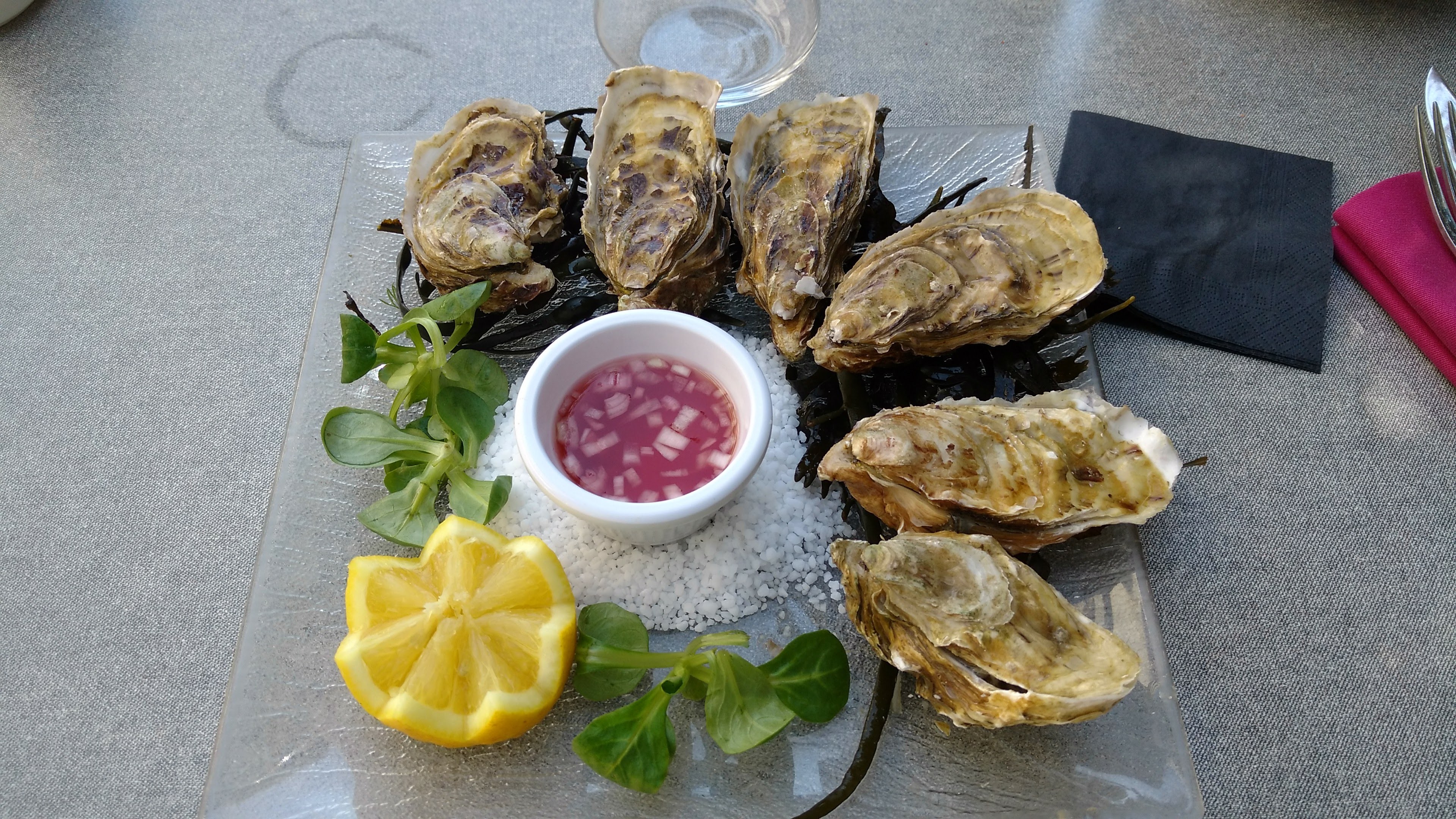Le restaurant a changé de nom, c'est le restaurant de la thalasso. Le cadre est joli mais il manque d'intimité, les tables sont un peu trop proches, on mange sur des tables de café sans nappe, quel dommage. Il manque une petite musique d'ambiance. Pour l'apéritif il manque une petite mise en bouche. Les plats sont très bons, mais est-ce que cela vaut réellement le prix? Le service est très bien.