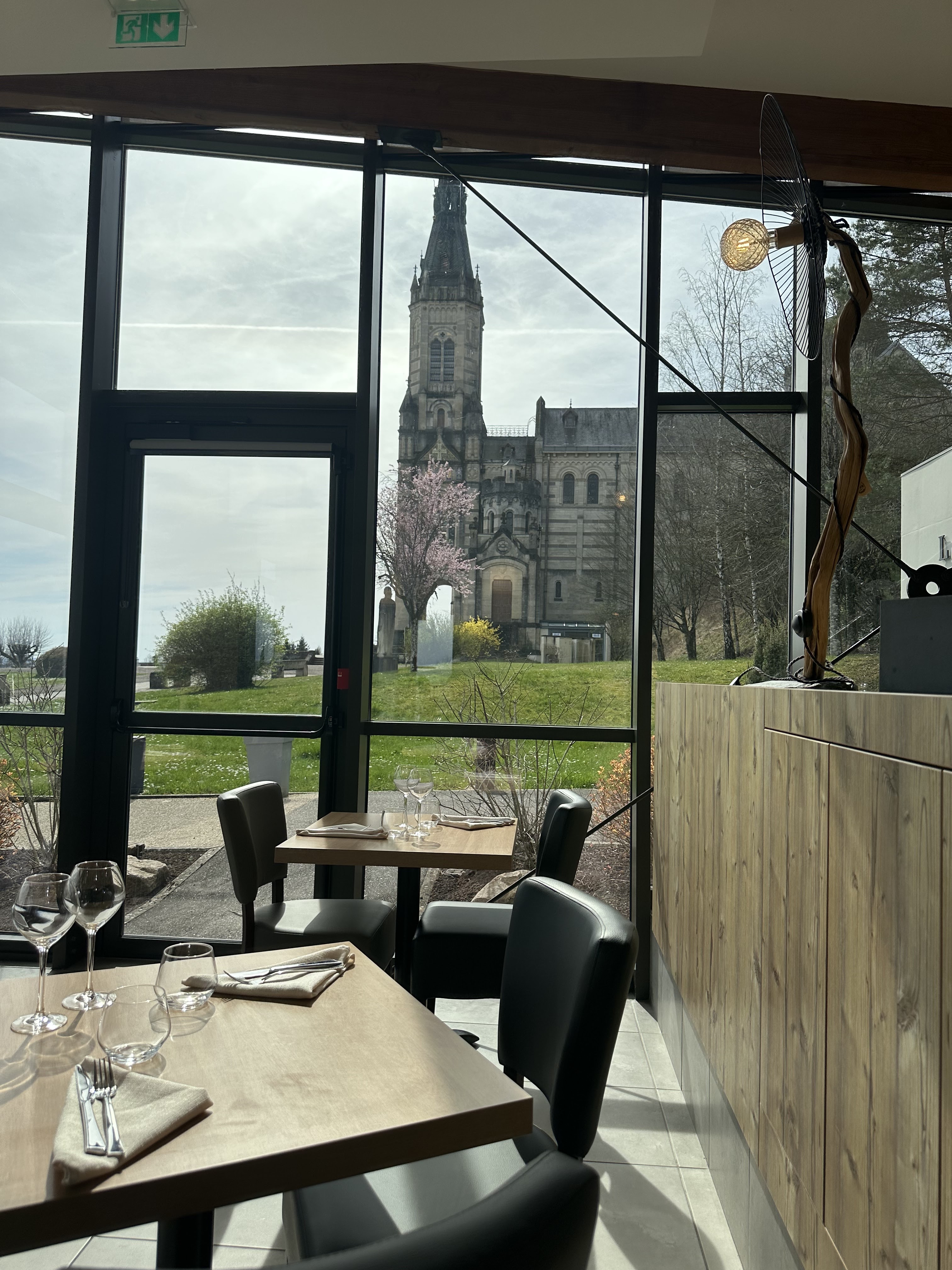 Lieu très agreable , lumineux , aéré avec un joli panorama au pied de la basilique. Excellent accueil , cuisine de qualité avec des produits frais, un restaurant qui merite que l'on s'y arrête.