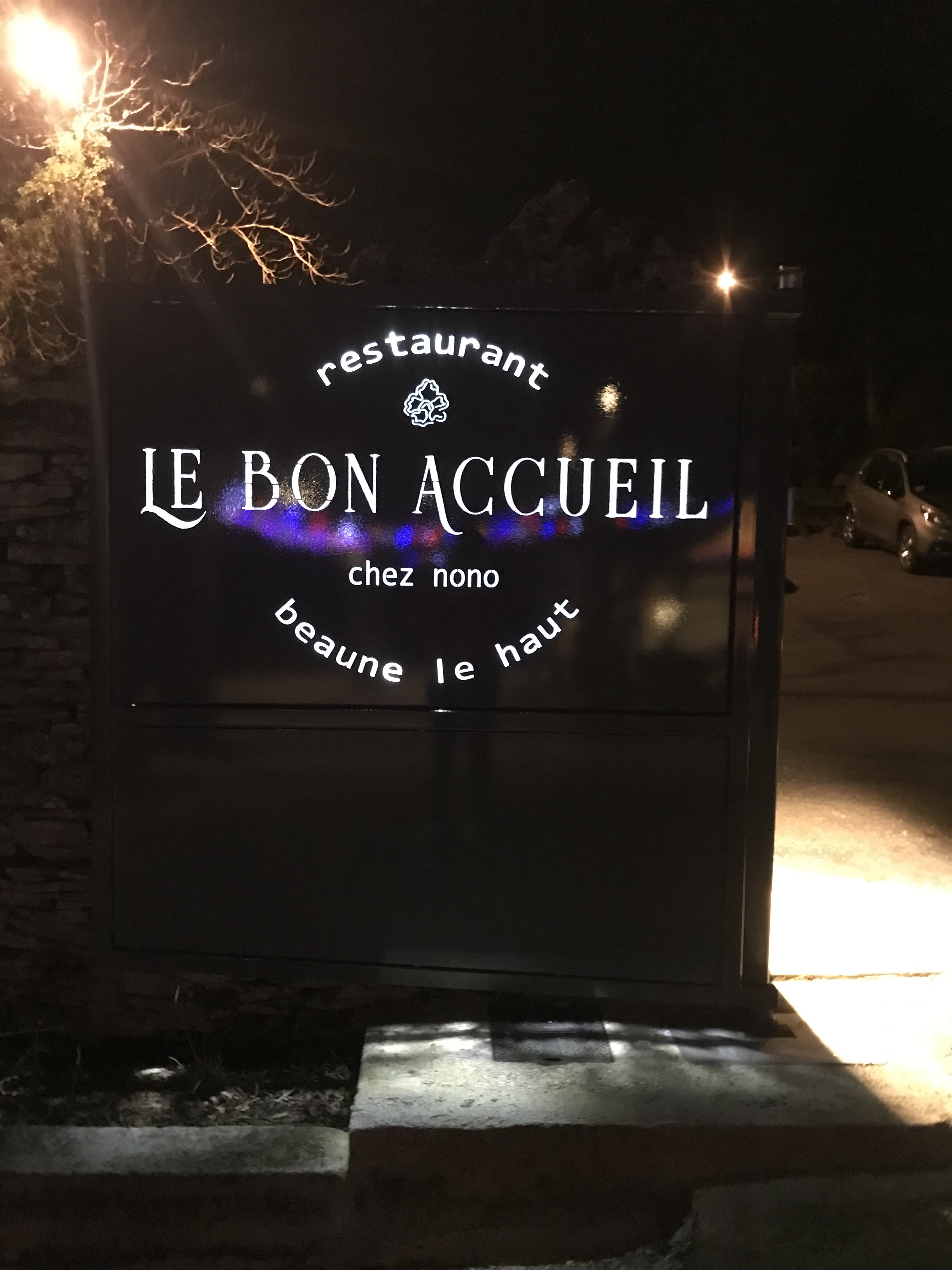 Ça vaut vraiment le détour (ou en voiture) ! Des portions généreuses et très abordables, notamment le menu du midi à 13€. Et c'est ouvert sept jours sur sept, ce qui semble très rare à Beaune. Ma femme et moi sommes tombés sur ce restaurant lors d'une randonnée à travers les collines à l'ouest de Beaune. Les travaux du service forestier nous ont fait rentrer tard en ville pour le déjeuner et Google Maps nous a indiqué que Le Bon Accueil était à proximité. nous avons été choqués qu'il soit ouvert lundi et nous avons été ravis de l'excellente nourriture, du service amical et des prix bas. Pour deux repas de trois plats et deux verres de bon vin, nous n'avons payé que 44 € au total. J'ai mangé un steak avec le menu du jour à 13 €, ce qui semblait être une bonne affaire. Pour couronner le tout, la route du retour vers Beaune vous fera traverser des vignobles pittoresques. Fortement recommandé à tout moment, mais surtout le dimanche, le lundi et pendant le déjeuner.
