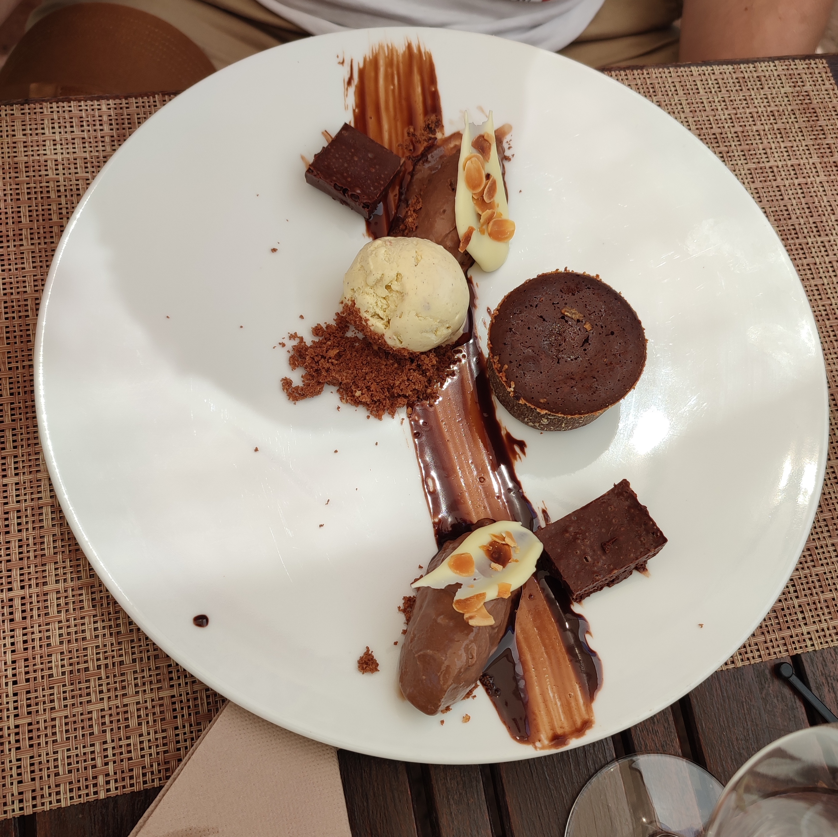 Superbe terrasse avec du personnel au petit soin repas en phase avec le prix étant donné le lieu. Quand on sait que le matin un hélicoptère fait des rotations.