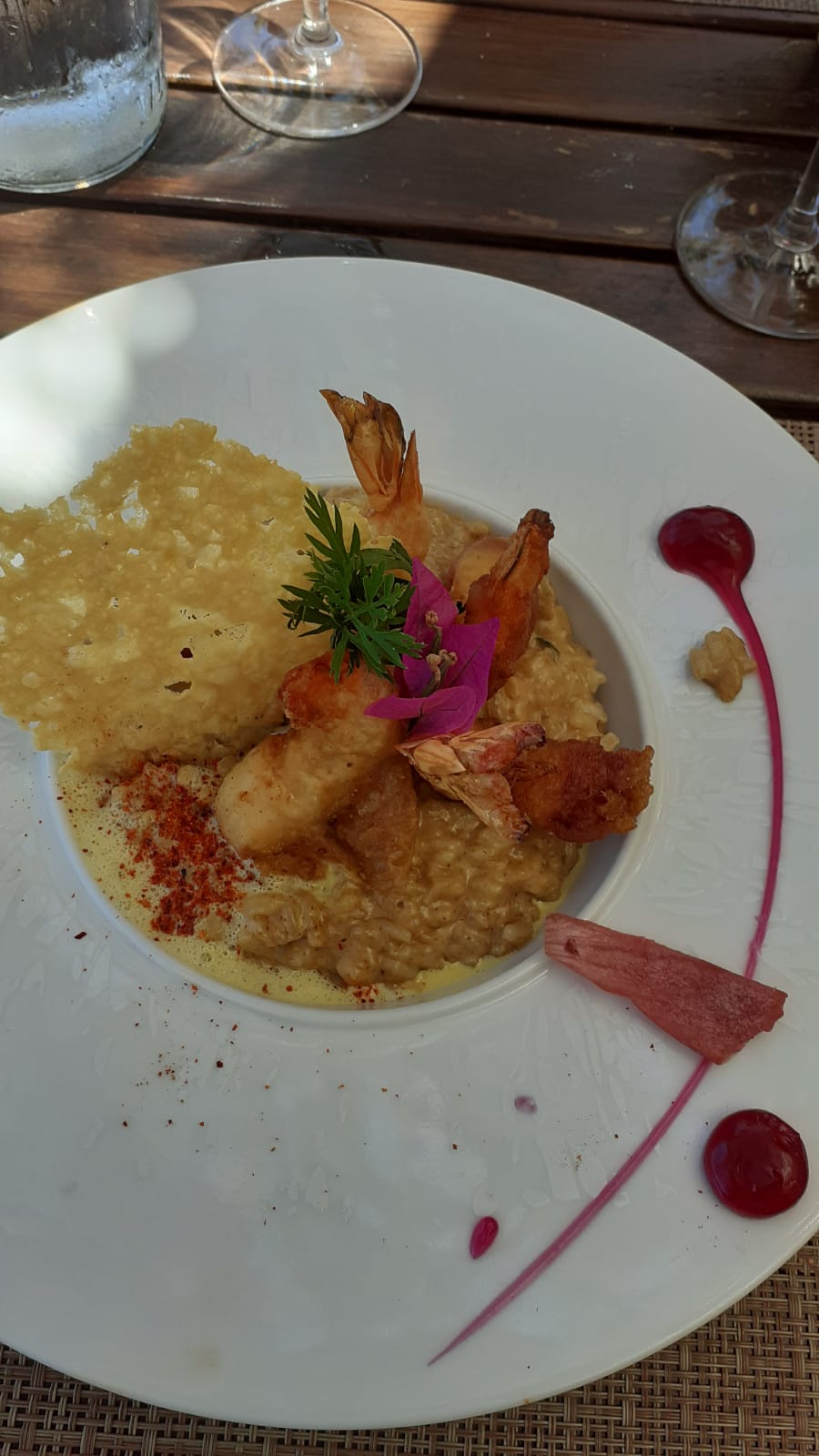 Superbe restaurant dans un cadre magnifique recommandé par notre skyper aucun regret top . Un très bon risotto aux gambas
