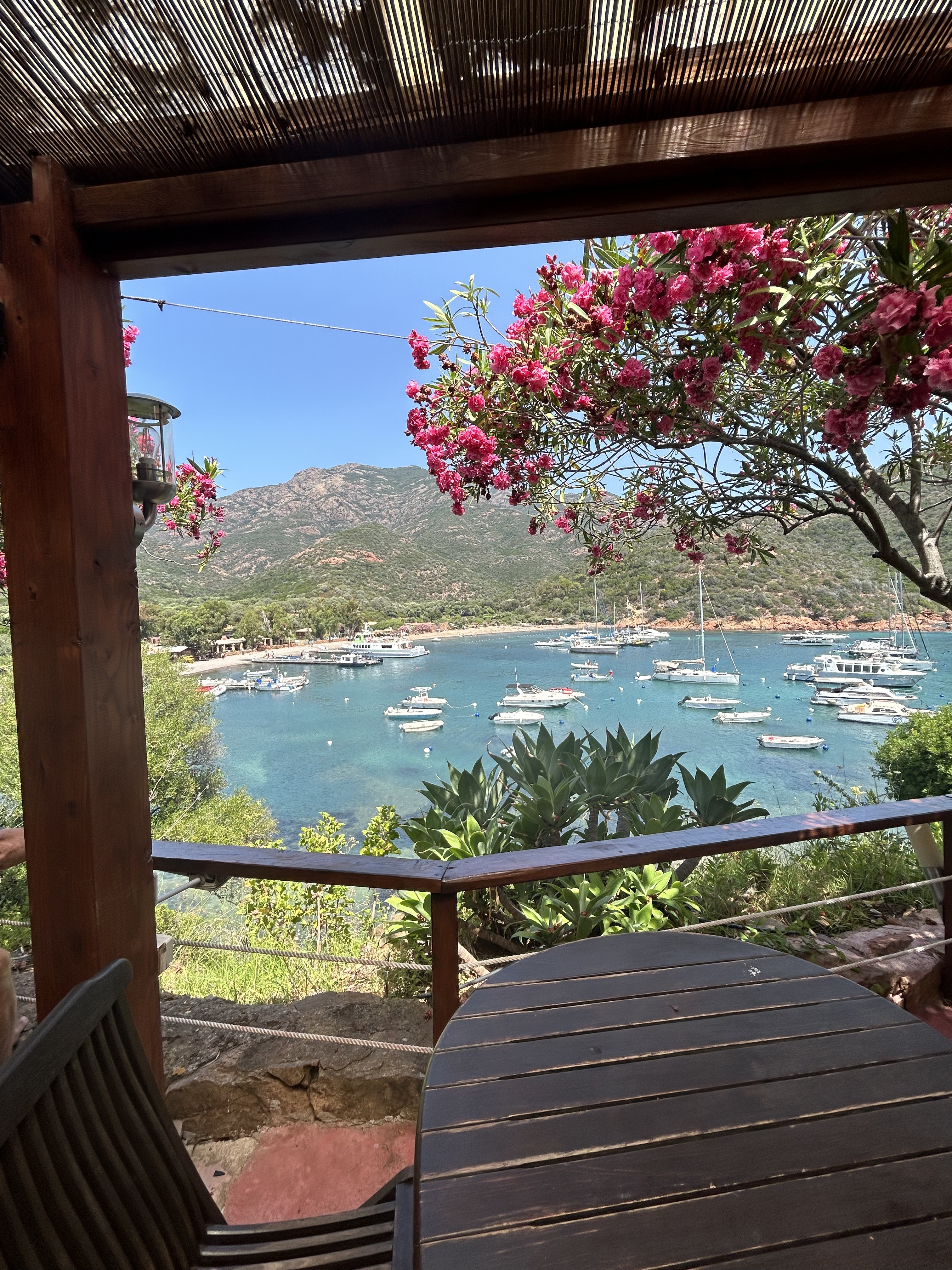 Lieu spectaculaire avec une vue imprenable sur la baie de Girolata. Equipe au top qui travaille en famille. Merci pour tout et petit plus la myrte de Julien 😀👍