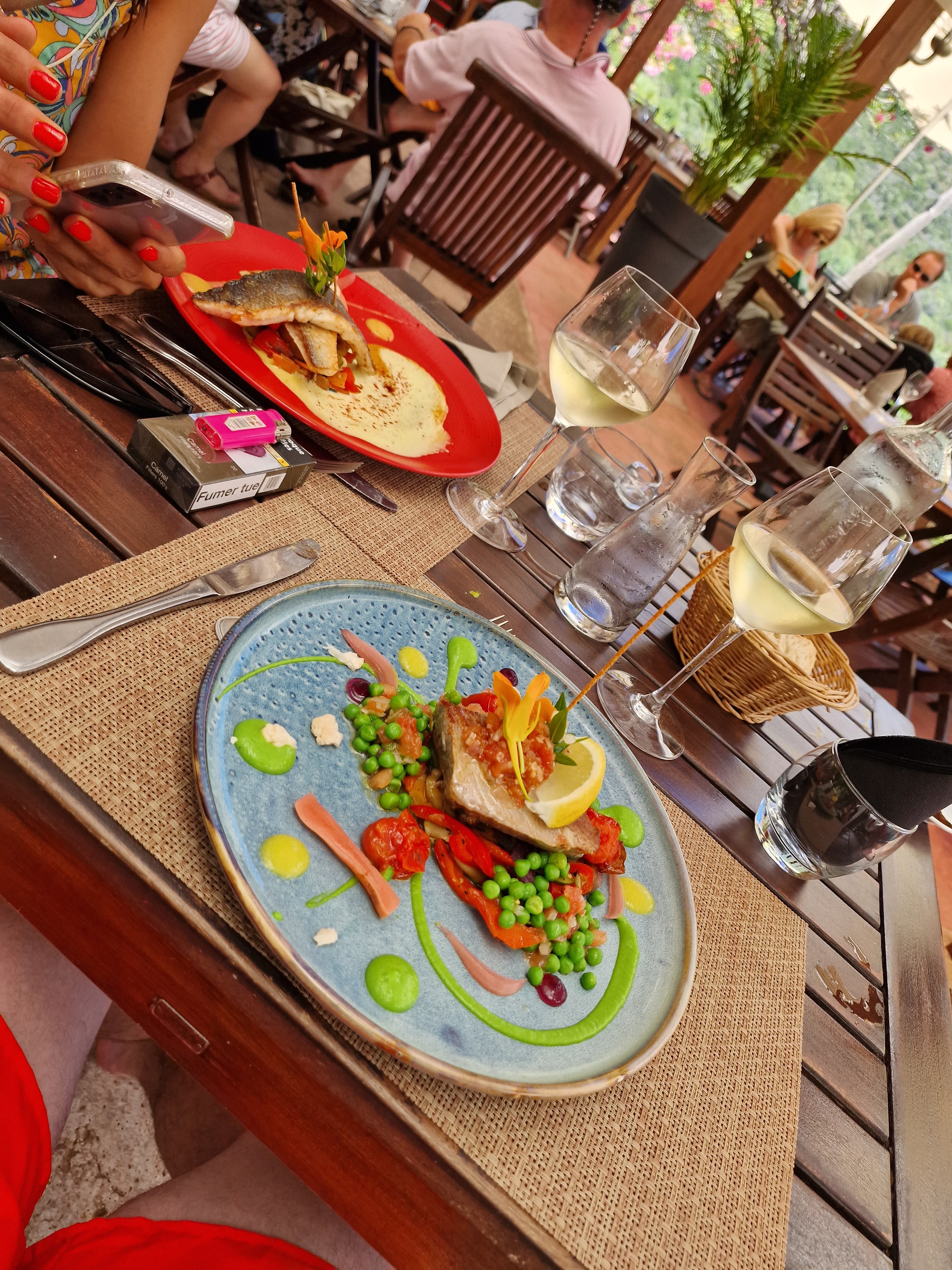 Vue magnifique, personnel aux petits soins et très sympa. Des beaux poissons frais cuisinés simplement. C'était parfait ! Merci
