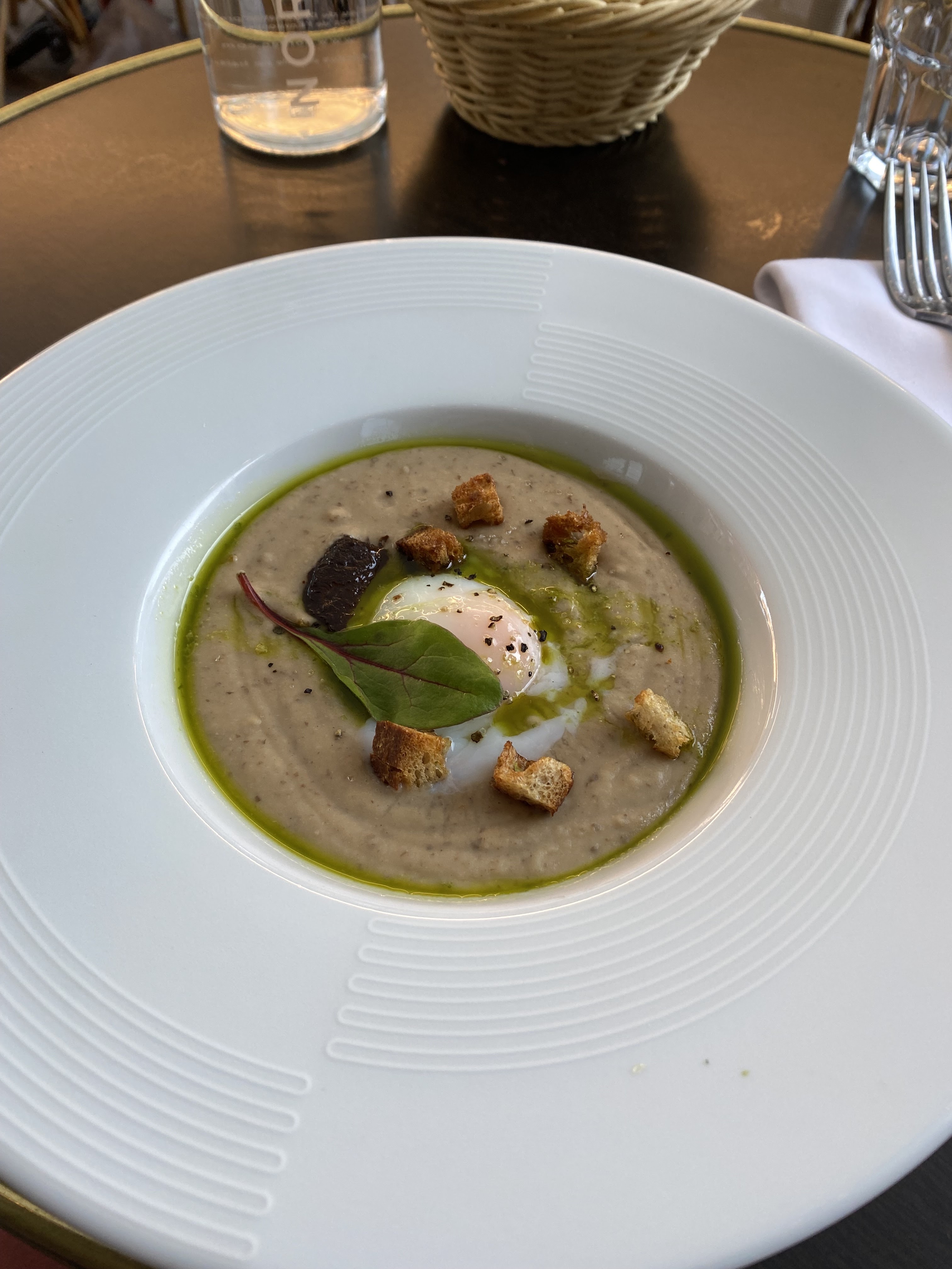 Le rapport qualité-prix ne correspond pas. Le prix de 28€ pour le poêlée de cèpes en persillade me semble excessif et la présentation et le goût laissent également à désirer. Le repas de mon compagnon était correct.