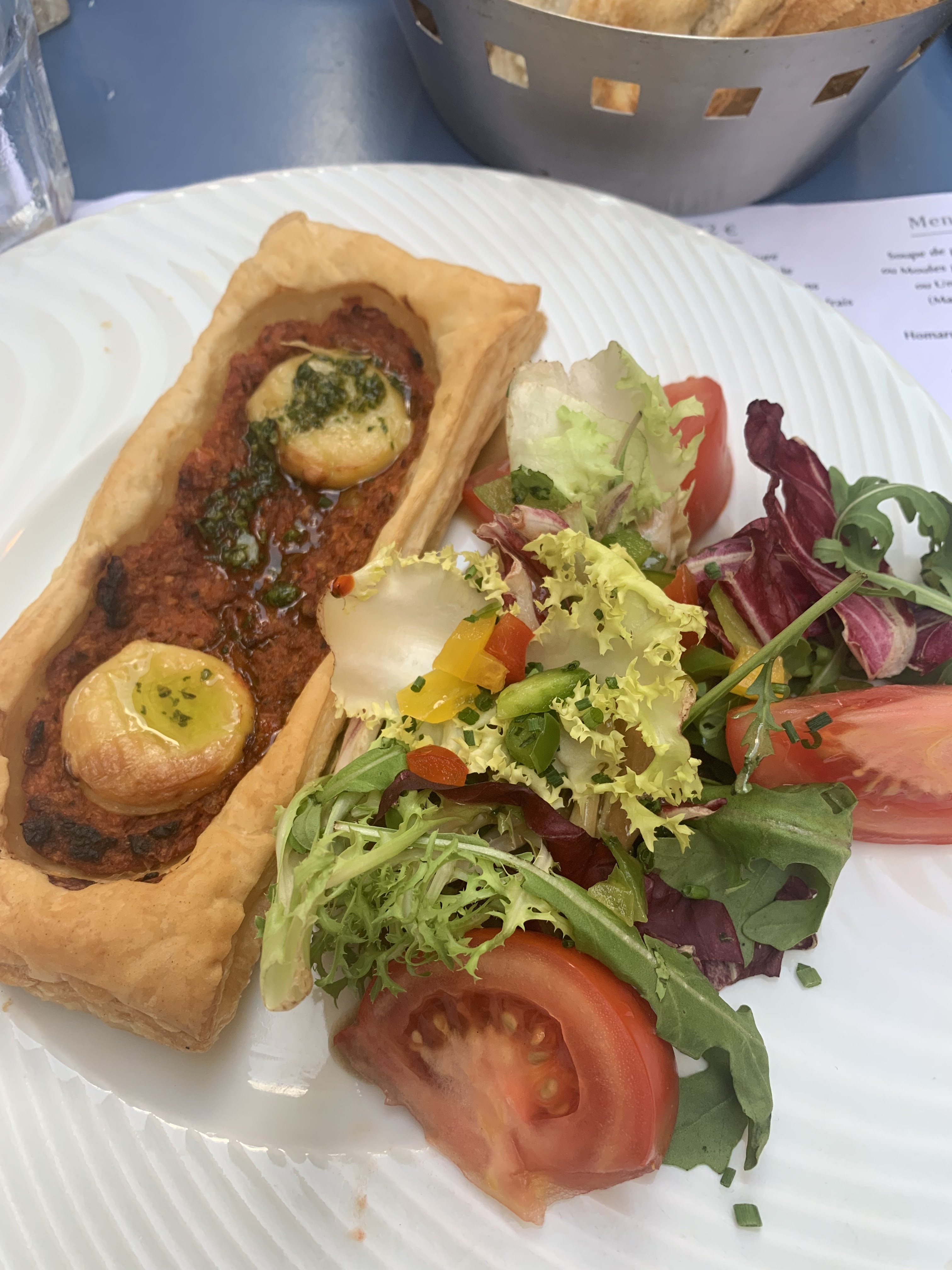 Les moules à la Provençale étaient délicieuses, le poisson cuit juste comme il faut et la tarte aux pommes/caramel pour finir sur une note sucrée. Je recommande c'était super! Cadre simple, personnel accueillant, peu d'attente, bonne cuisine. On en demande pas plus!