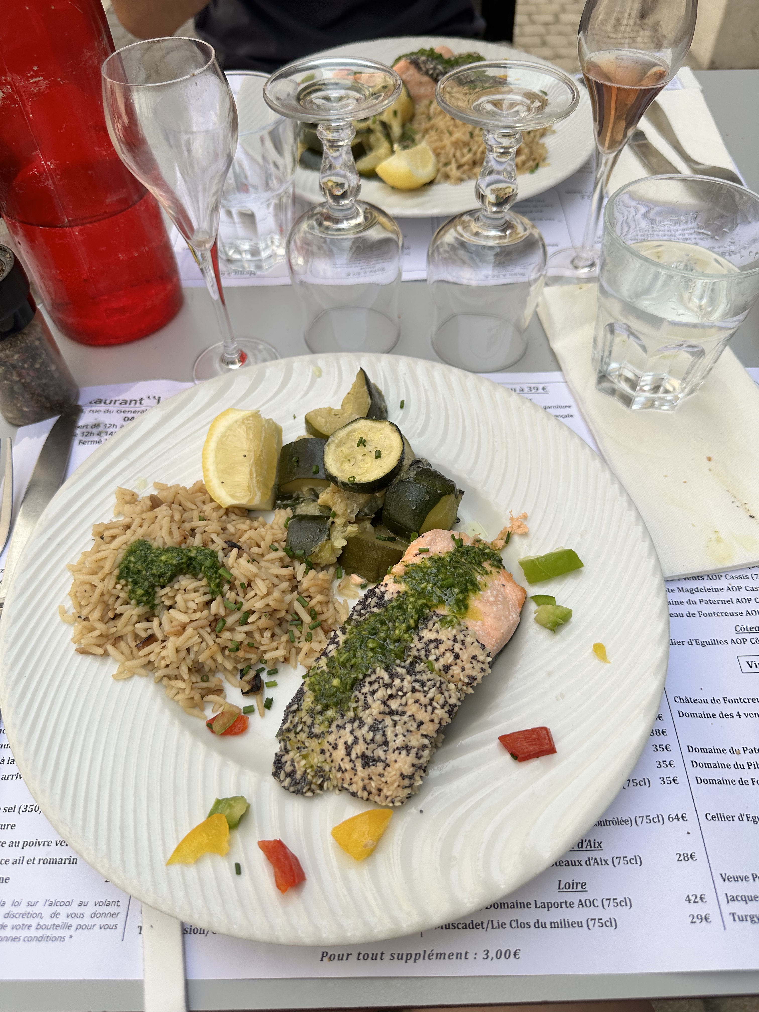 Je m'attendais à mieux d'un endroit aussi bien noté. Les serveurs étaient hargneux et ont oublié que nous étions là. La nourriture était bonne, sauf les légumes qui étaient tellement détrempés qu'ils se désintégraient pratiquement. Nous avons apprécié le dessert mais ce n’était en aucun cas une grâce salvatrice. Il y avait un serveur qui semblait joyeux et saluait les gens, mais c'était l'un des pires services que nous ayons eu lors de notre voyage dans le sud de la France. Je ne reviendrais pas.
