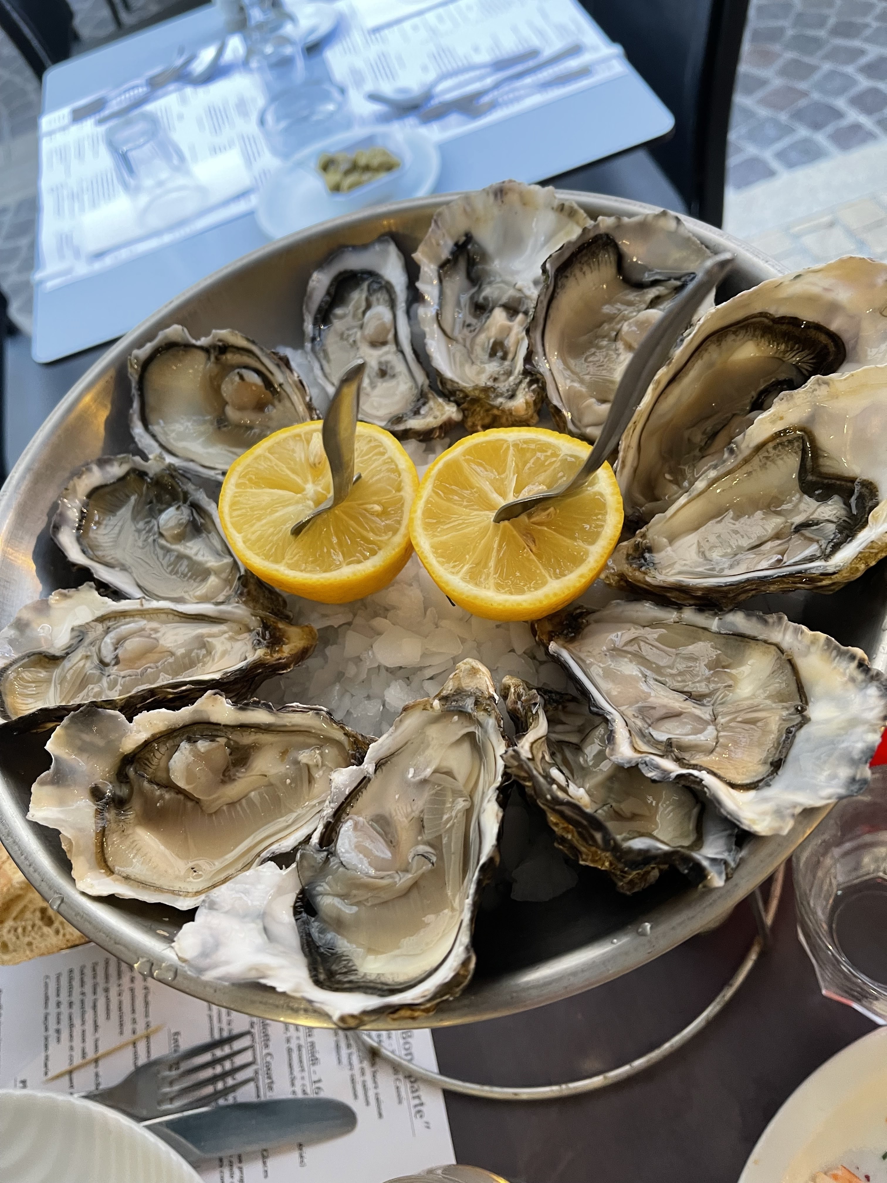 Les huîtres sont bonnes par contre le poisson grillé ( dorade ) un peu trop blanc et non grillé aucune présentation du plat , quand au poulet a la crème je l ai trouvé sécher et couvert de crème je pense plus à de la dinde que du poulet Très déçu . On mangé mieux avant