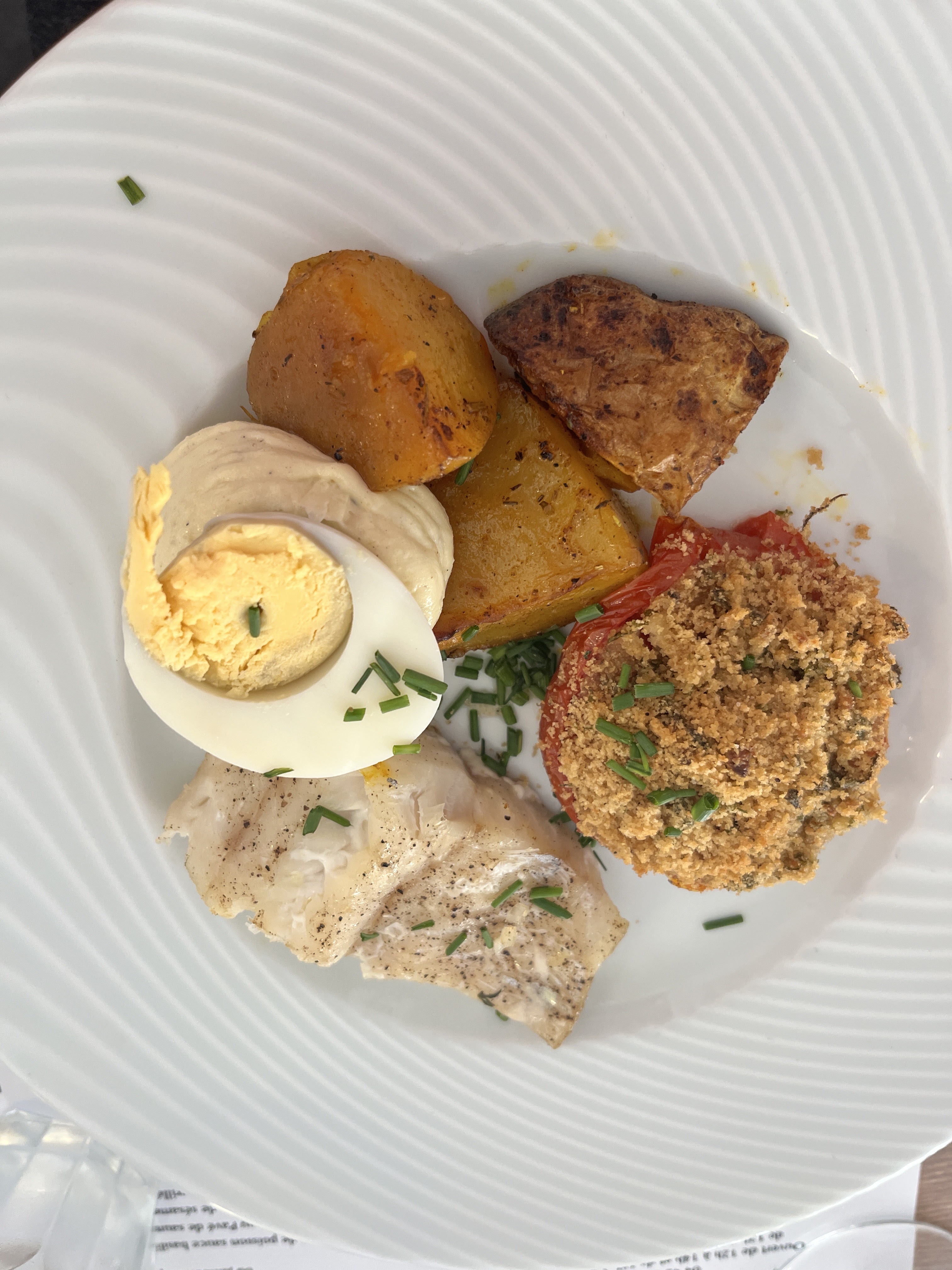 Menu du jour à 16 euros - Filet de loup sauce à l’estragon, pommes de terre, ratatouille, dessert, café - plats trop salés, manque de choix dans les desserts et desserts fades - vin blanc en pichet correct. Qualité gustative à améliorer. FC