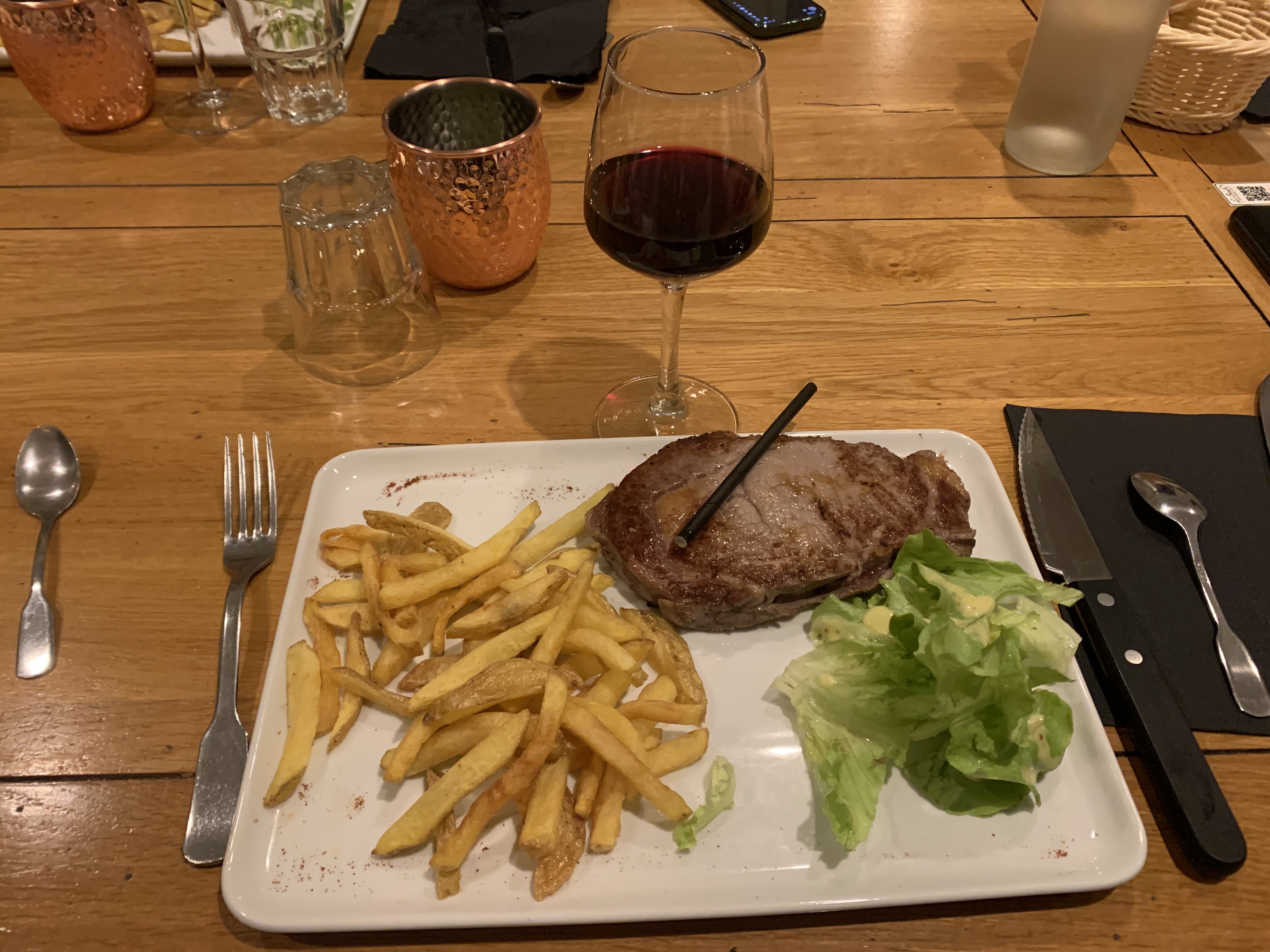 Soyons honnête, nous avons été déçu les frites étaient froides, l’entrecôte de 300g faisait 150g et la paupiette inexistante... Après une demande de vin, pas de nouvelles ? Le service laisse à désirer. Bonne chance pour vos prochaines expériences.