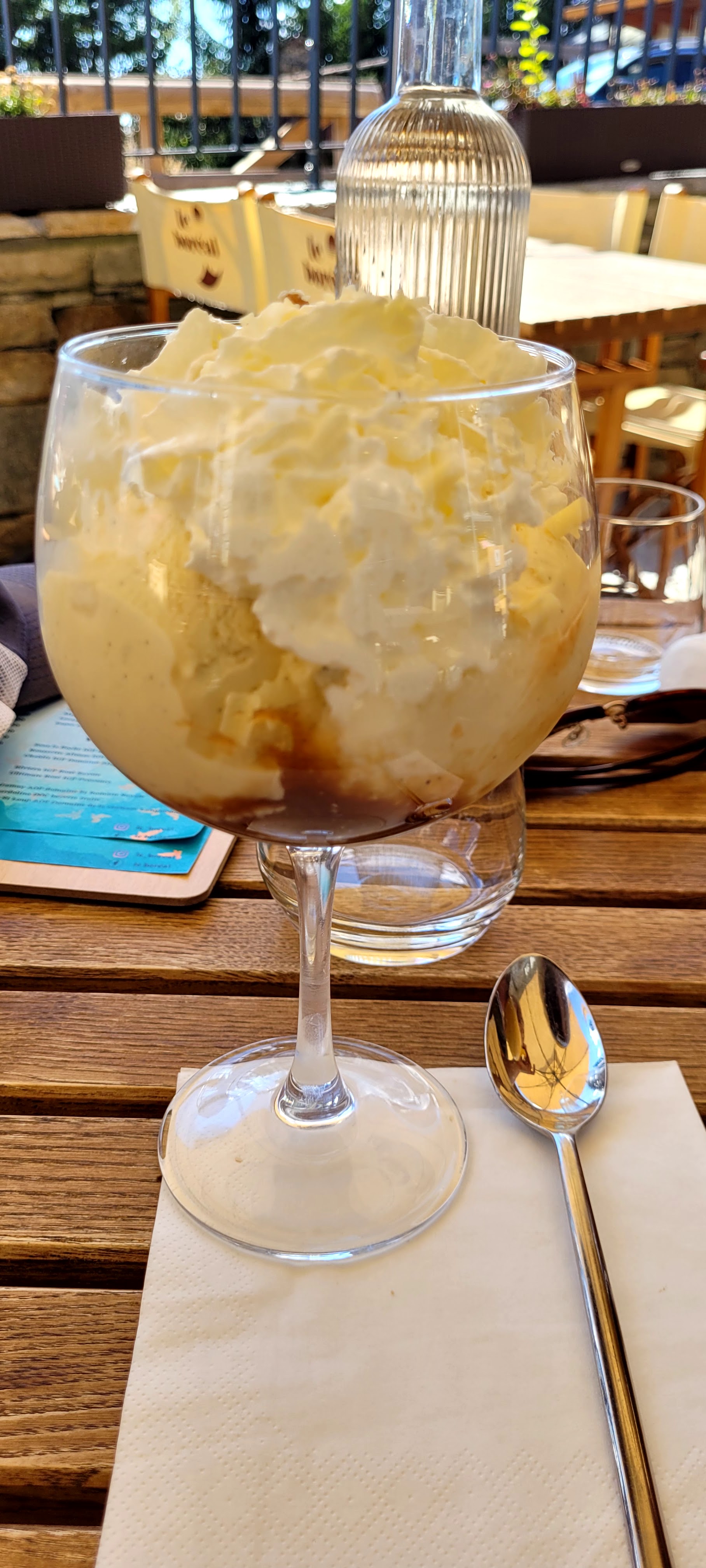 Endroit parfait pour se reposer après une journée de marche, cocktail et glaces très bons. Nous n'avons pas mangé ici pas de note pour la cuisine.