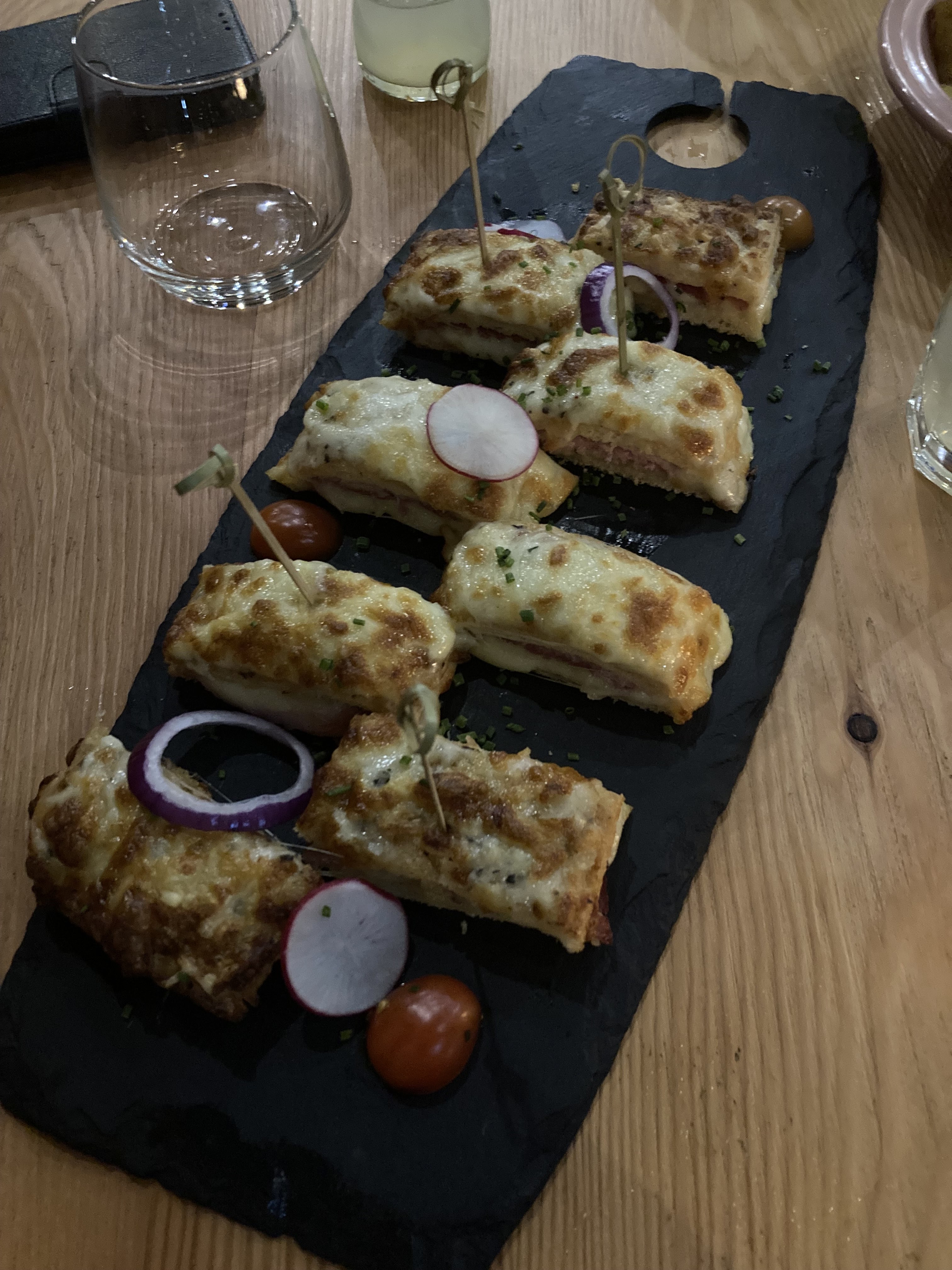Lieu chaleureux et agréable. Service rapide. Nous avons pris trois planches à partager : mini croques-monsieur à la truffe, cœurs de burrata et guacamole maison. Tout était très bon.